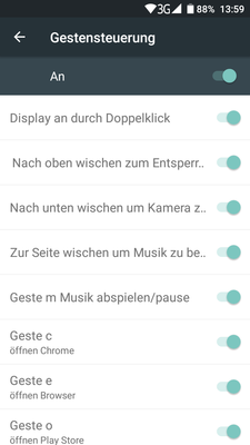 Analog zur Ausstattung sind Software-Features zum Individualisieren des Gerätes für ein Smartphone der Einsteigerklasse reichlich vorhanden. So ist es beispielsweise möglich, durch bestimmte Gesten oder Bewegungen Applikationen zu starten oder Bilder weiterzuschieben ohne das Gerät zu berühren - ähnlich wie man es bereits von Samsung Geräten kennt.