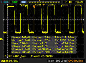 | 48 ms ... steigend ↗ und fallend ↘ kombiniert | ↗ 12 ms steigend | |