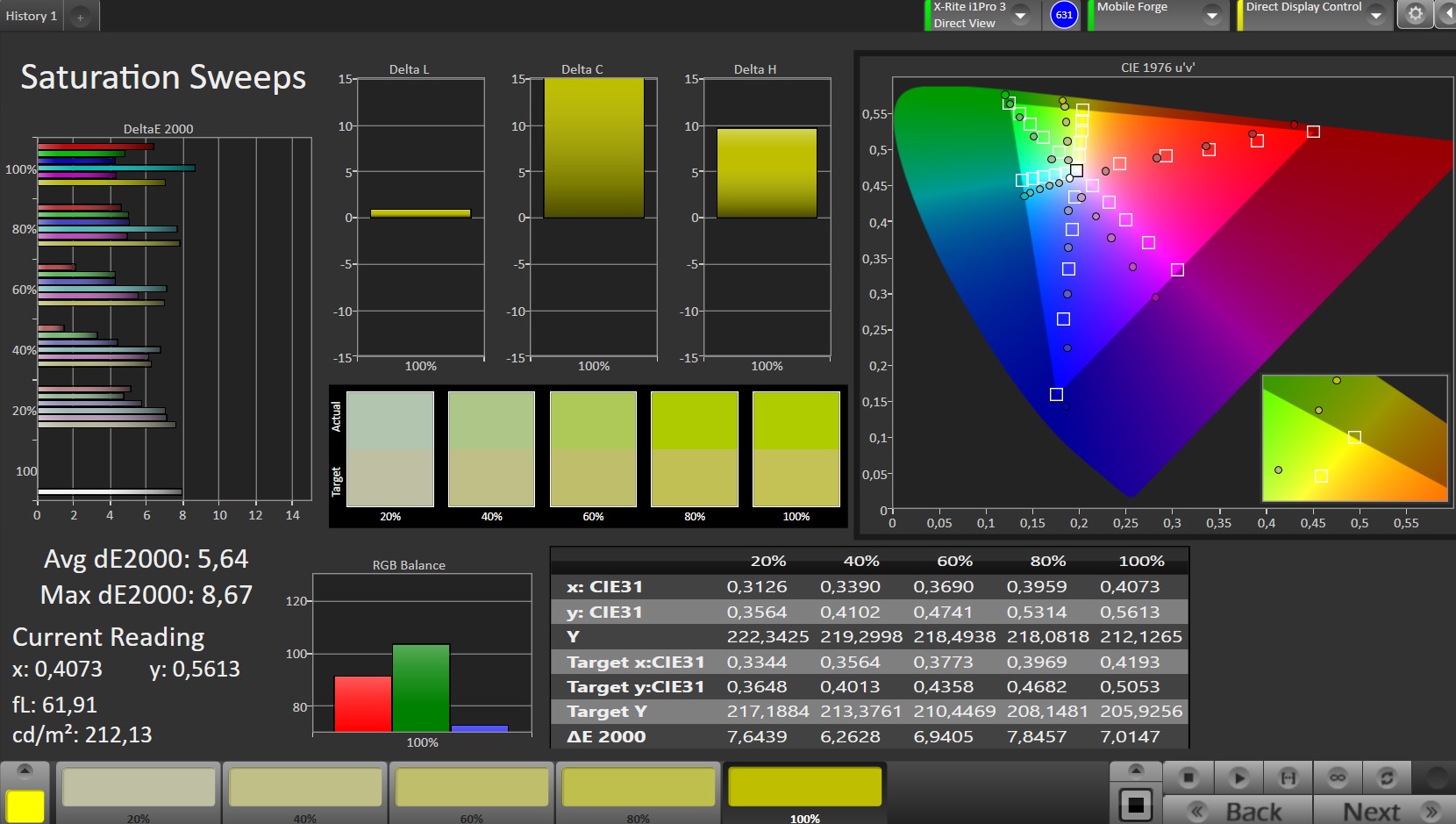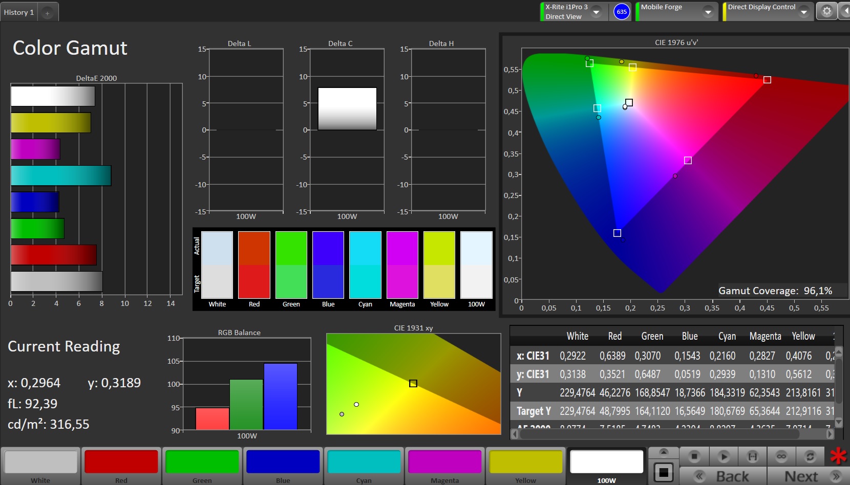 | Delta E Colorchecker * | 5.93 | 7.41 -25% | 2.4 60% | 5.02 15% |