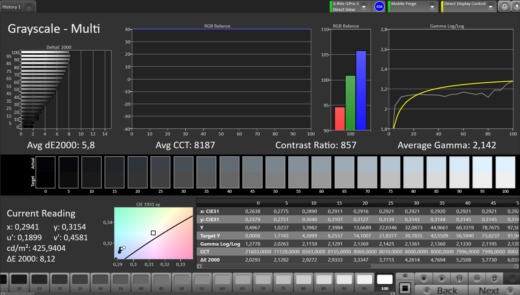 ΔE Greyscale Calman: 5.8 | ∀{0.09-98 Ø5}