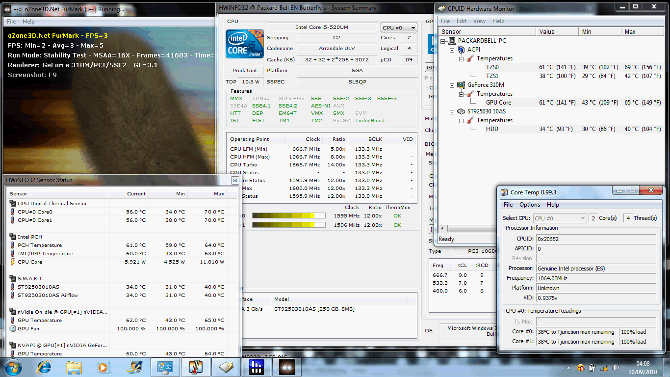 Der Core i5-520UM erhitzte sich intern maximal auf 70 Grad, die Nvidia 310M lag bei höchstens 65 Grad. Auch diese unbedenklichen Werte sprechen von einem ausgereiften System aus Heatpipes und aktiven Doppel-Lüftern.