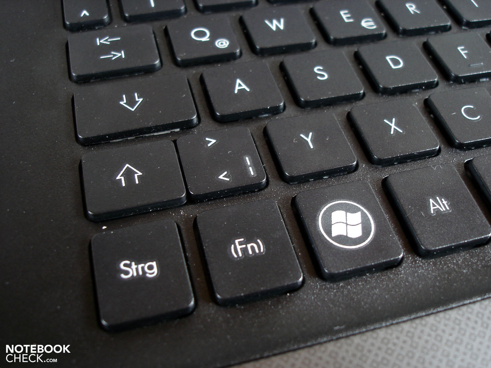 Einzig die schmale „°^“-Taste und die extrem winzigen Pfeiltasten müssen wir deutlich ankreiden, vor allem in Rennspielen macht sich dieser Umstand negativ bemerkbar. Manch einen dürfte zudem das relativ klapprige Tippgeräusch stören. Anders als bei den meisten Notebooks werden mithilfe der Fn-Taste übrigens nicht die Spezialfunktionen (wie Displayhelligkeit etc.) aktiviert, sondern die normalen F-Tasten. Dieses Verhalten lässt sich im Bios ganz einfach umstellen.