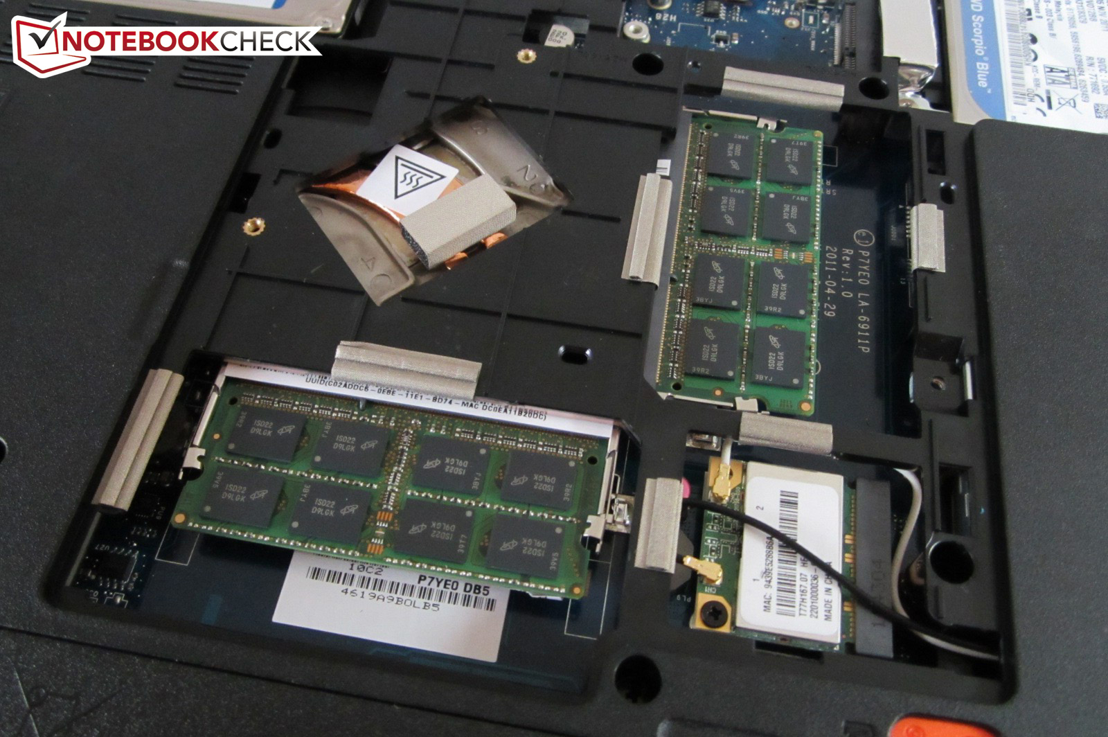 Um an das Funkmodul, den Arbeitsspeicher und die Festplatten heranzukommen, müssen vom Gehäuseboden lediglich drei Schrauben entfernt werden und die Wartungsklappe entnommen werden. Lüfter, Prozessor und Grafikkarte sind nicht direkt zugänglich.