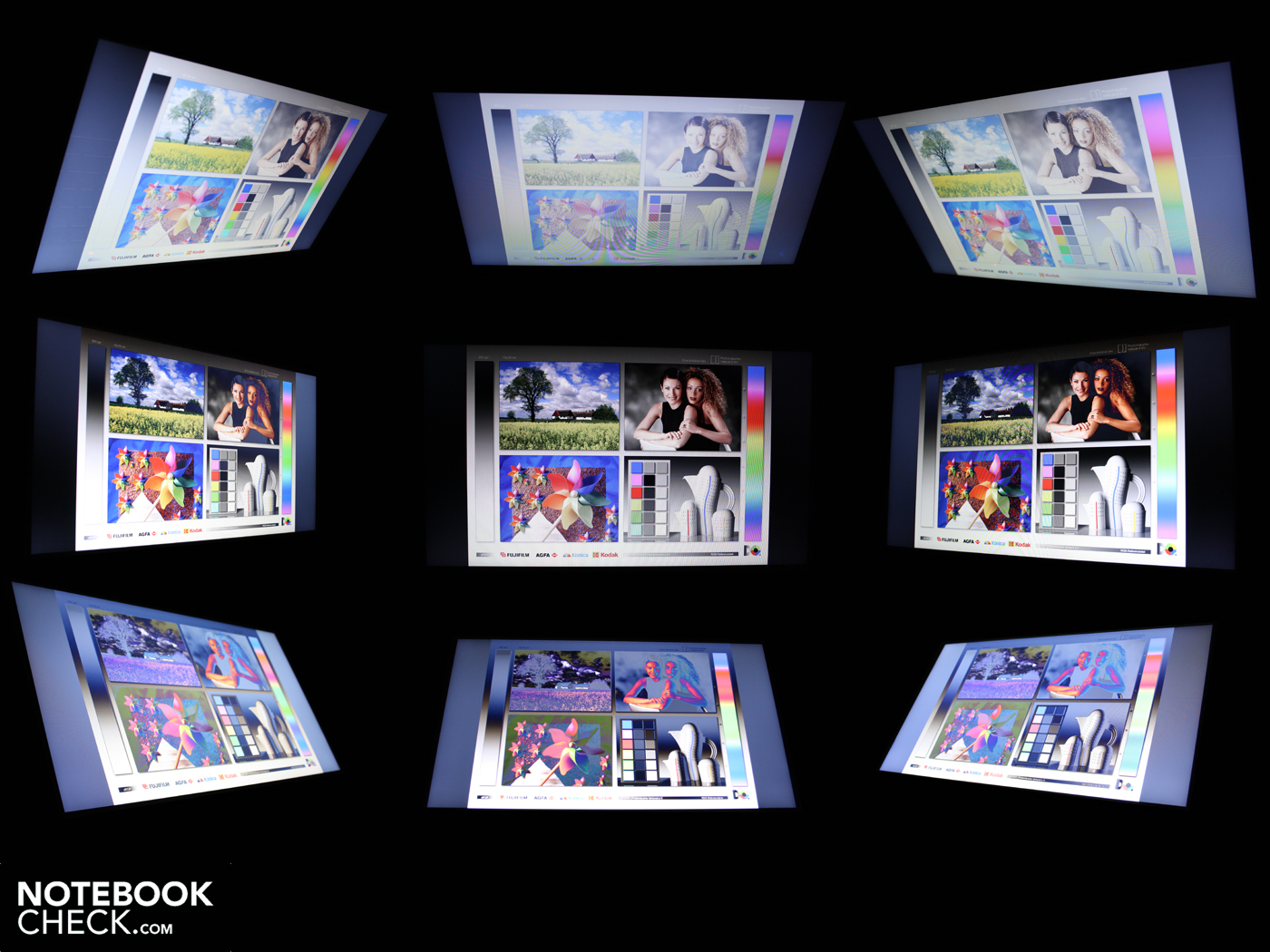 Das Samsung-Panel hat seine Schwachstelle im geringen Kontrast von 139:1. Das Glare-Type-Panel hübscht die geringen Kontraste optisch etwas auf. Dadurch entsteht visuell ein knackiger Farbeindruck. Zum Konsumieren von Fotos, Filmen oder Computerspielen sind die Farben halbwegs ansprechend. Für Profis der Bildbearbeitung ist das AUO-Panel schon wegen der groben Auflösung gänzlich ungeeignet.