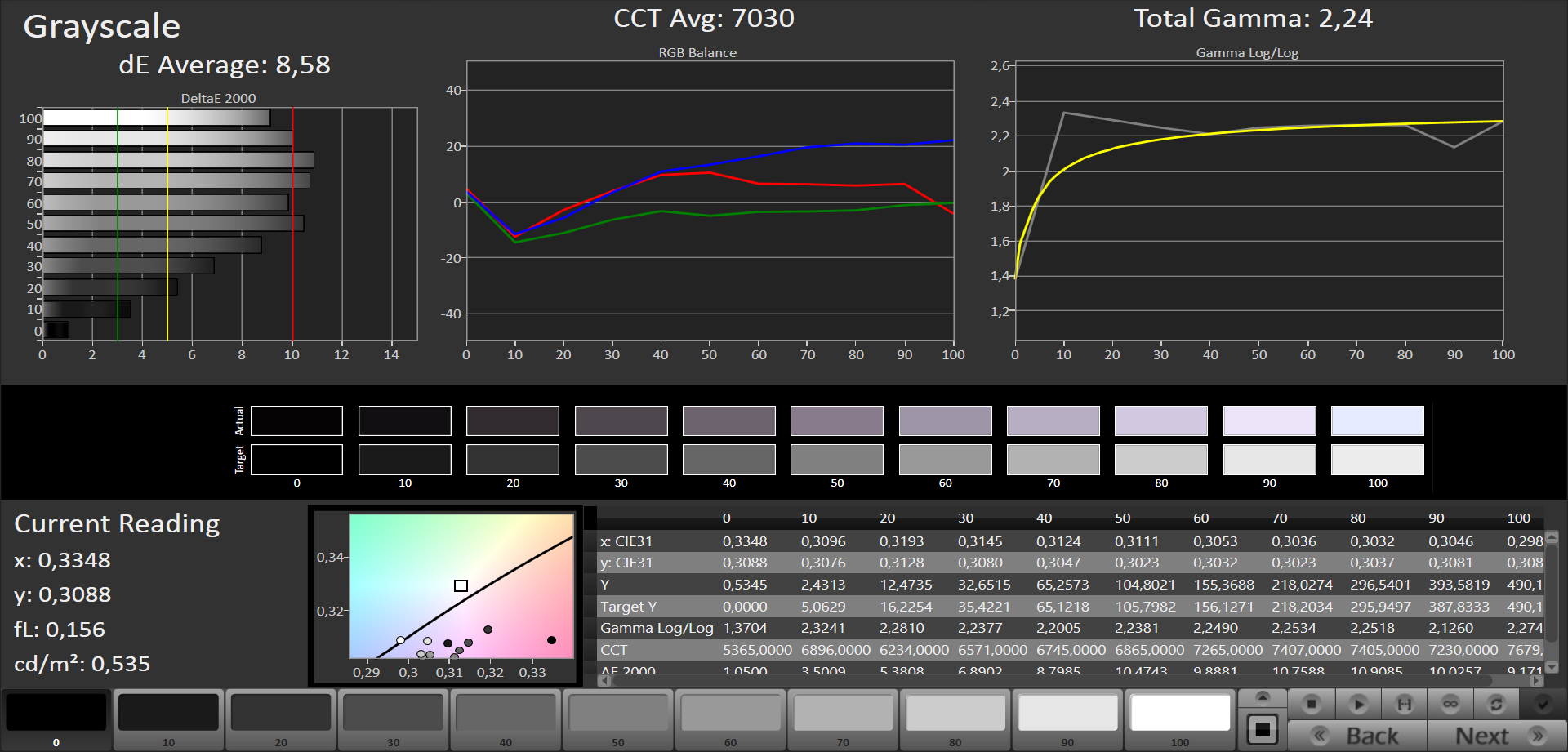 ΔE Greyscale Calman: 8.58 | ∀{0.09-98 Ø5}