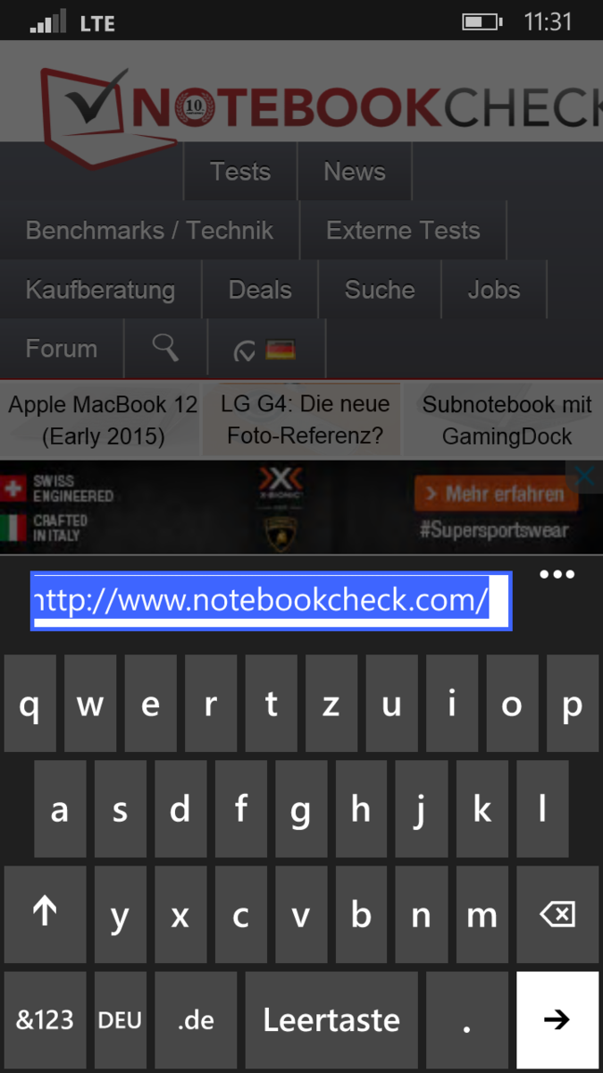 Die Tastatur entspricht dem Standard von Windows Phone. Wischeingaben werden auch in der Embedded-Variante unterstützt, und die automatischen Wortvorschläge sind ebenfalls an Bord.