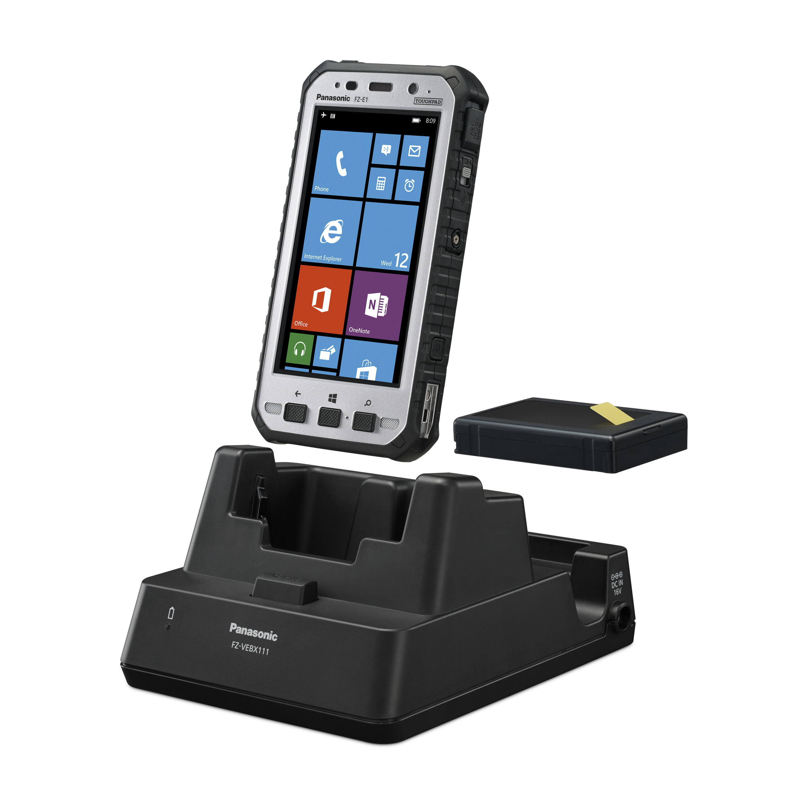 Der Lieferumfang des Panasonic ToughPad FZ-E1 beschränkt sich auf ein Netzteil mit einer Nennleistung von satten 60 Watt (16 Volt, 3,75 Ampere). Optionales Zubehör gibt es reichlich. Von Trageriemen, Kfz-Halterungen und Holstern über diverse Ladestationen für Einzel- oder mehrere Geräte bis hin zu Ersatzakkus ist alles erhältlich. Dabei besitzen die Ladestationen auch immer ein zusätzliches Ladefach für den Zusatzakku. Preise müssen bei Panasonic angefragt werden.