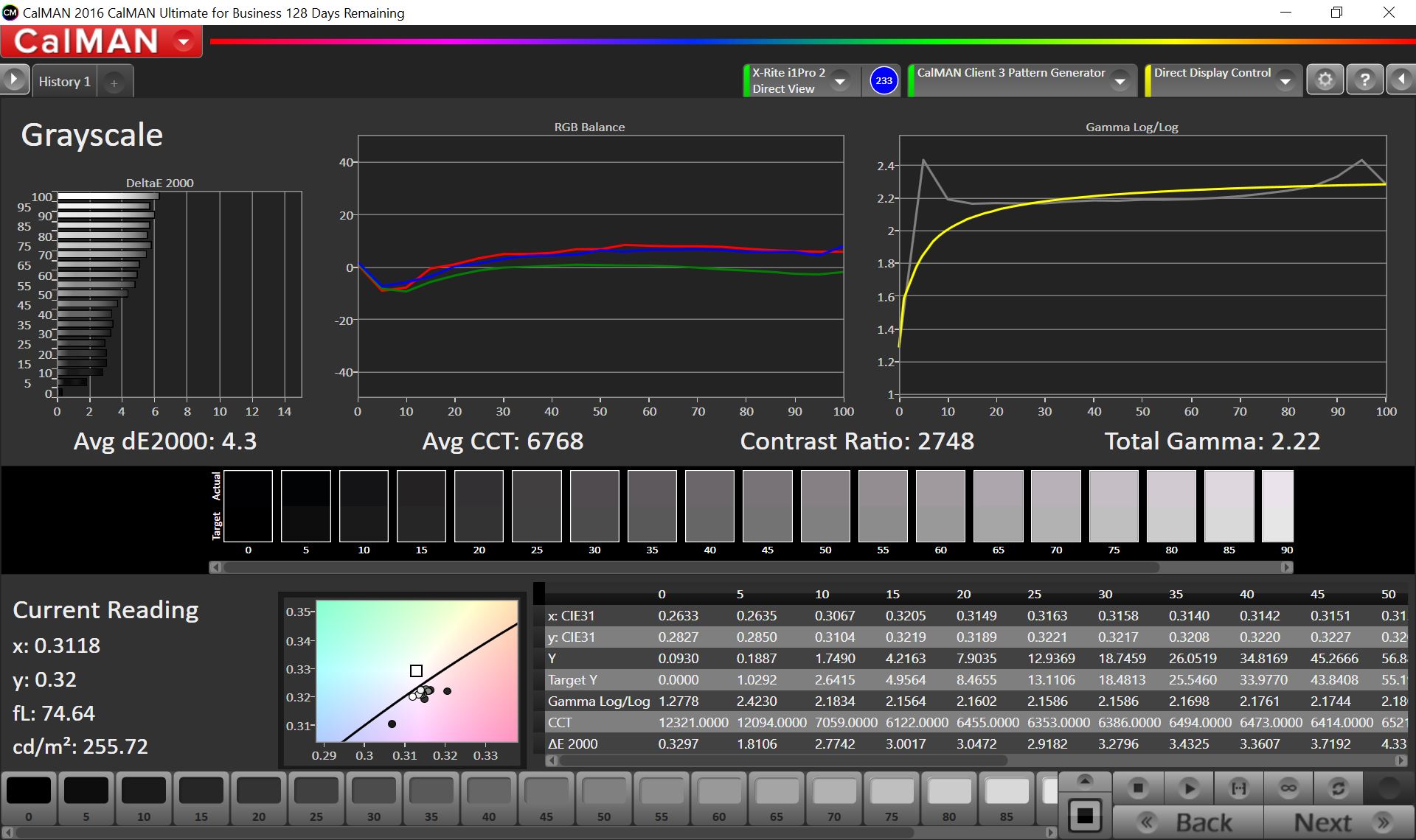ΔE Greyscale Calman: 3.6 | ∀{0.09-98 Ø5}