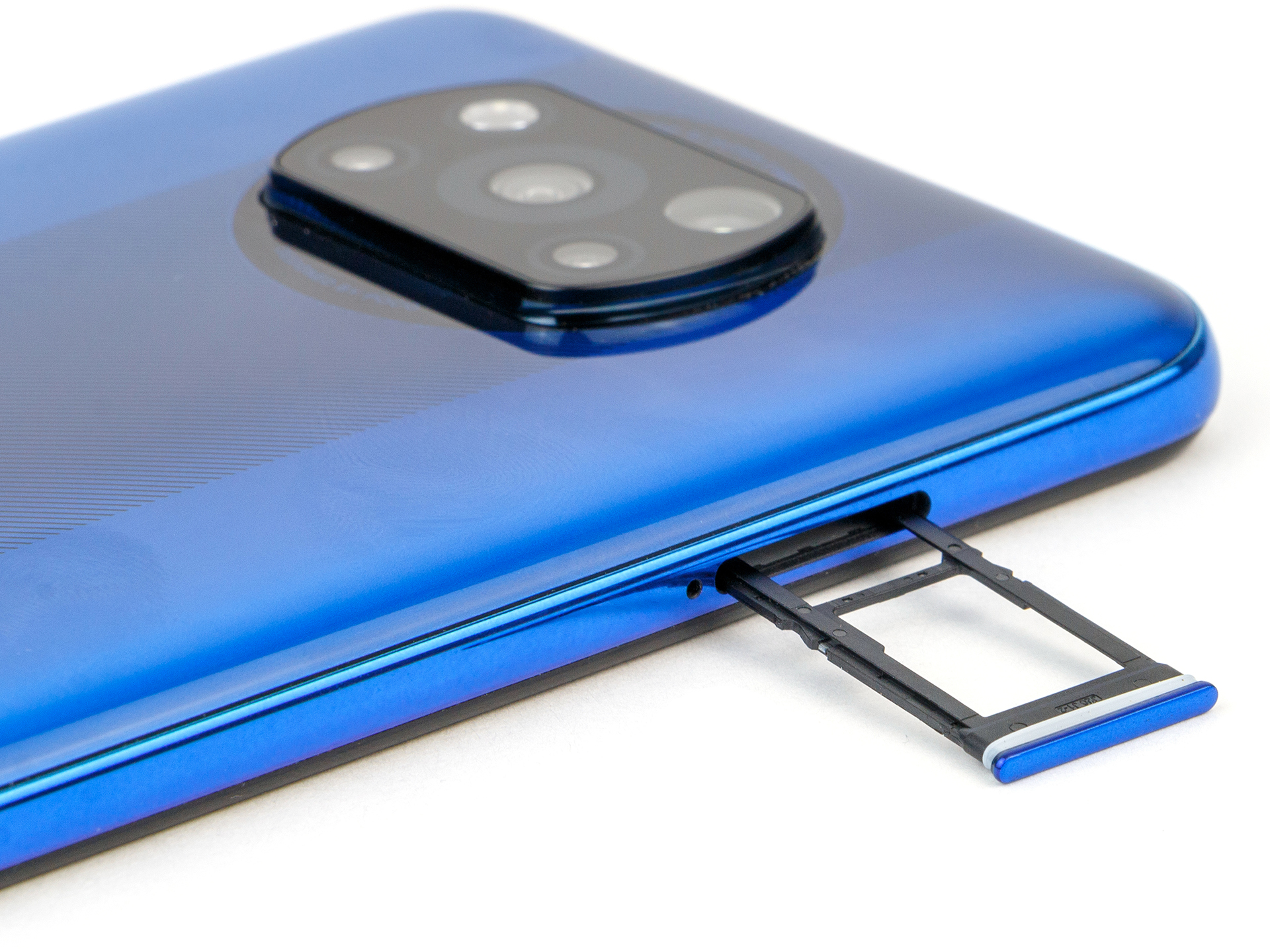 Das Poco X3 unterstützt VoLTE sowie WLAN-Calling. Durch den Einsatz eines Hybrid-SIM-Slots können bis zu zwei Nano-SIM-Karten genutzt werden, wenn auf den Einsatz einer microSD verzichtet wird.