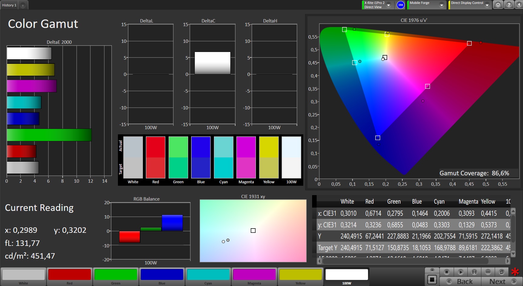 | Delta E Colorchecker * | 6.39 | 2.1 67% | 4.62 28% | 1 84% | 1.7 73% |