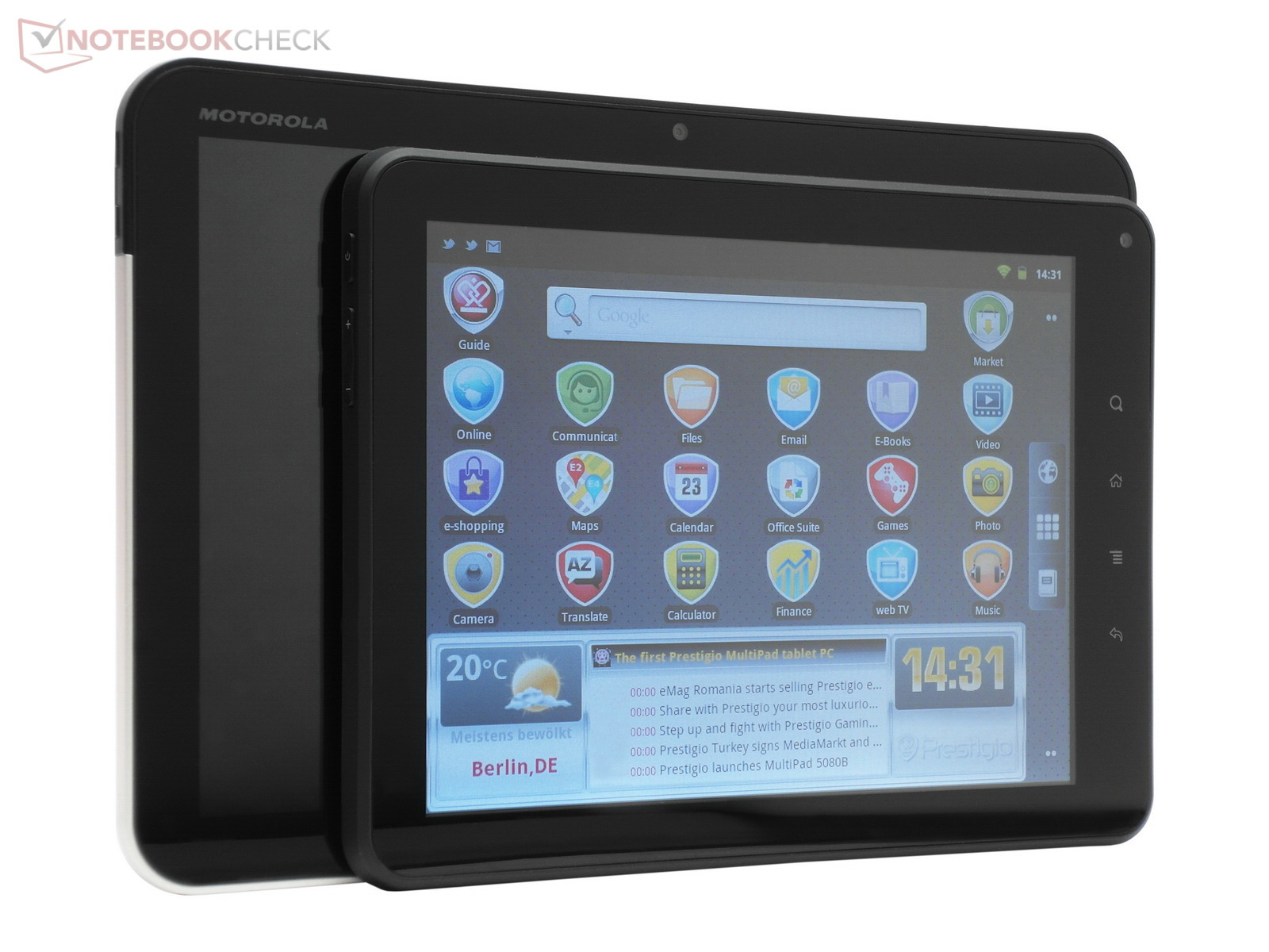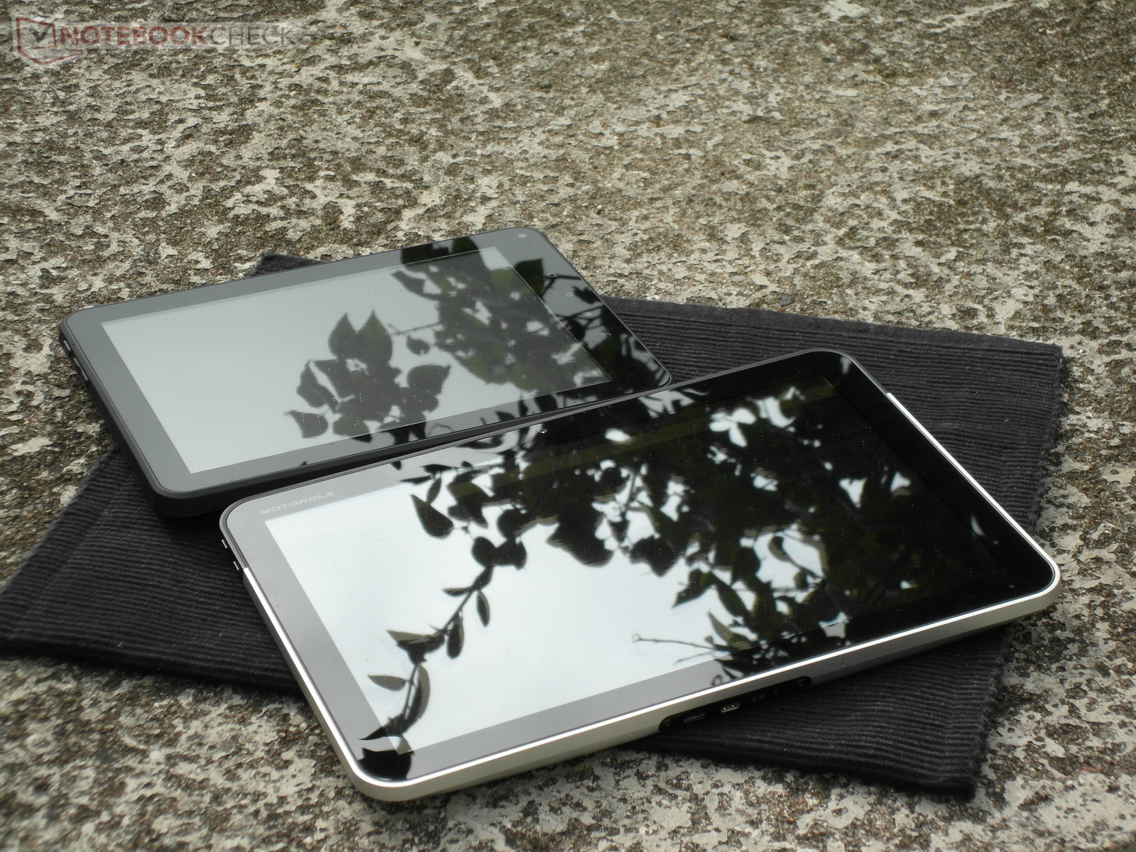 Hinsichtlich der maximalen Displayhelligkeit rangiert das Prestigio Multipad PMP5080B hingegen im Mittelfeld der Einsteiger-Tablets. Während die Oberliga mit iPad 2 und maximal 368 cd/m² sowie dem Motorola Xoom mit 304 cd/m² schon kräftig strahlen, muss das PMP5080B mit rund 100 cd/m² weniger auskommen. In Innenräumen ist der Helligkeitsunterschied im direkten Sichtvergleich zwischen Motorola Xoom und PMP5080B sehr deutlich auszumachen. Im Freien relativiert sich dies, da einfach beide Tablets höllisch spiegeln. Erst im Schatten lässt sich das Xoom wieder deutlich komfortabler ablesen.