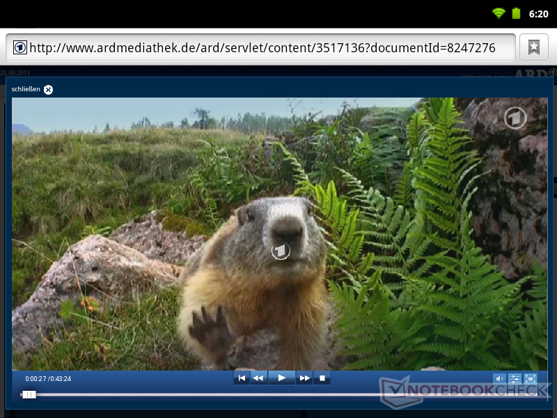 Wir beginnen unseren Praxistest zur Videoleistung mit den beiden Webseiten von ARD und ZDF. Die sind vollgepackt mit animierten Elementen und daher quälen wir das Multipad PMP5080B zunächst auf die Webseiten der Rundfunkanstalten. Die Webseiten benötigen zwar etwas Zeit zum Laden, mit der Anzeige und Wiedergabe aller Webelemente hat das PMP5080B aber sichtlich keinerlei Probleme. Sowohl ard.de als auch zdf.de meistert das PMP5080B anstandslos. Der nächste Ausflug geht dann in die ARD-Mediathek, wo wir uns kurz von „Wildes Deutschland“ berieseln lassen. Von Ruckeln des Videoclips keine Spur. Auch bei der ZDFmediathek spult das PMP5080B die Clips sauber ab. Klasse.