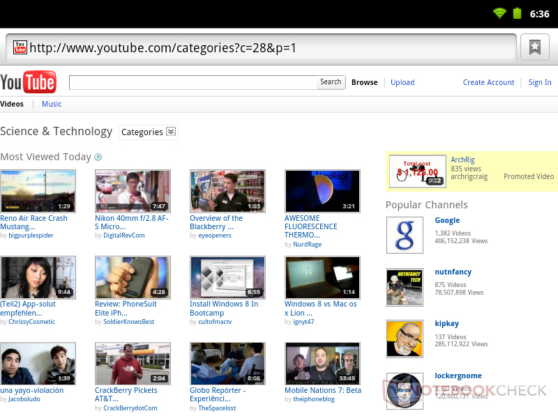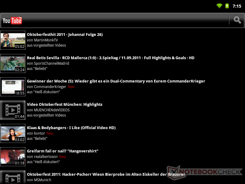 Nächster Halt: Youtube. Auch Youtube-Clips in HD-Auflösung sind im Test für das PMP5080B kein Problem. Langsam dämmert es uns, dass das PMP5080B und der Rockchip RK2918 im Inneren nun ihre Stärken ausspielen können. Gut, dann geben wir uns doch die HD-Clips in 1.080p – leider macht uns die Internetleitung oder besser T-Online hier zunächst einen Strich durch die Rechnung, da das Tablet immer wieder auf die Daten aus der Leitung warten muss. Erst spät in der Nacht können wir dann festhalten, dass das PMP5080B auch die 1.080p-Clips von Youtube ruckelfrei wiedergeben kann.