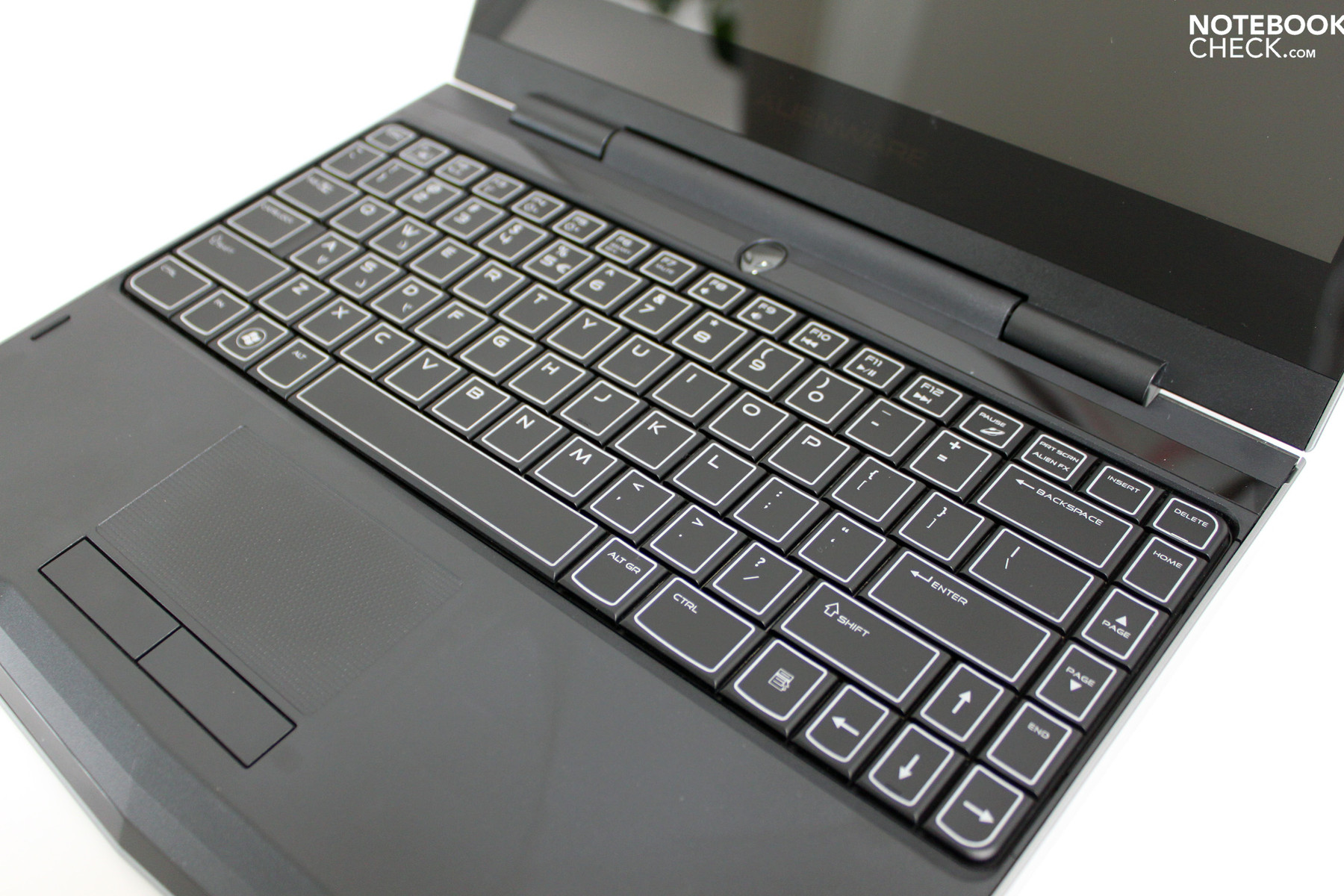 Typisch Alienware präsentiert sich auch die Tastatur. Genutzt wird die gesamte Breite des Gehäuses, was auch im 11-Zoll Format eine ausreichend große Tastengröße garantiert. Auffällig bei unserem Testgerät war das englische Layout mit einzeiliger Enter Taste. Bei den Serienmodellen sollte allerdings auch ein deutsches Layout verfügbar sein.