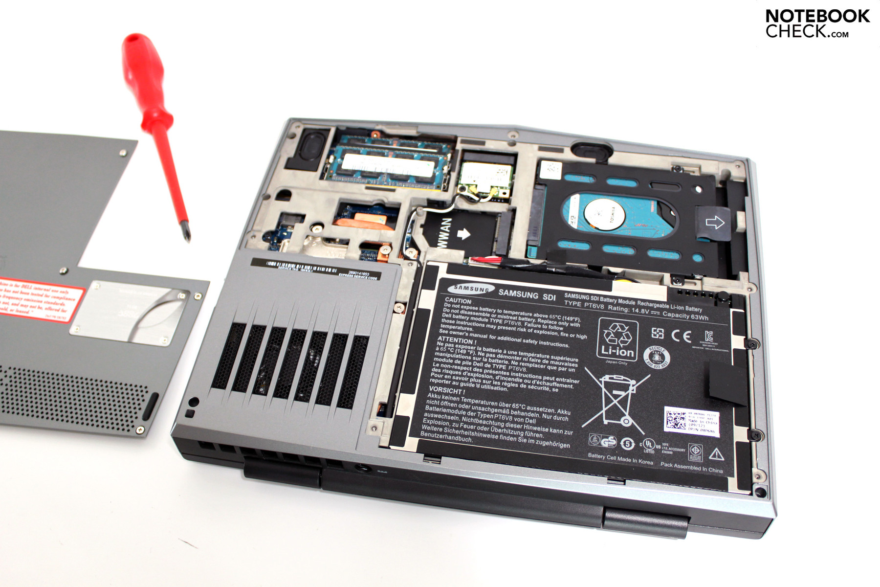 Zwar nur rund halb so groß wie seine Kollegen M15x und M17x, zeigt der Kleinste der Runde ein nahezu identes Alien-Design. Nicht nur die Optik, auch hinsichtlich Materialität steht dieser den größeren Kollegen um nichts nach. Das Gehäuse besteht aus massiven Aluminium Bauteilen, die dem kompakten Gamer eine sehenswerte Stabilität verleihen. Positiv wirkt sich hier auch die vergleichsweise dicke Baseunit aus. Mit einer Höhe von rund 33 Millimetern zählt das Notebook zu den „beleibteren“ seiner Gewichtsklasse. Dieses liegt übrigens mit rund 2.0 Kilogramm für den mobilen Einsatz im immer noch attraktiven Bereich.