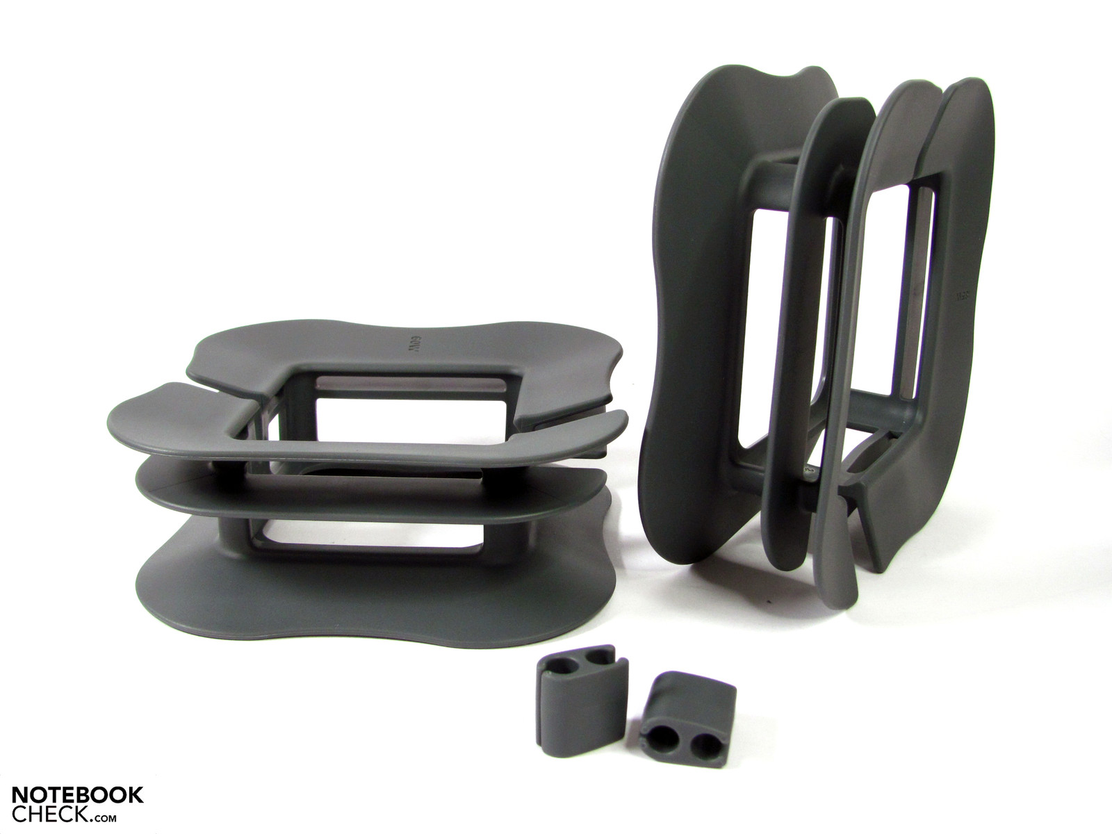 Dort kümmern sich zwei Führungen um die Kabel, die durch entsprechende Aussparungen geleitet werden. Mit etwas Sorgfalt lassen diese sich ordentlich aufwickeln und machen auch auf dem Schreibtisch eine gute Figur. Ungünstig erscheint uns dabei die zwingende Nutzung des Netzkabels, da sich das Netzteil als Wandstecker nicht passgenau einfügen lässt und dann natürlich auch in keine Steckdose mehr passt. Für eine gute Luftzufuhr sorgen das offene mit großen Schlitzen versehene Design und die vom Untergrund abgehobene Position des Netzteils.