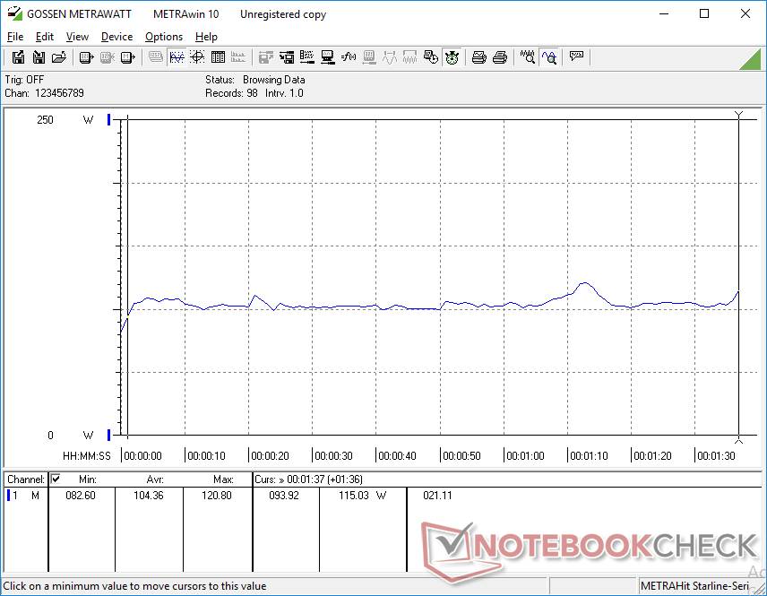 Im Leerlauf werden im Energiesparmodus auf der niedrigsten Helligkeitsstufe ungefähr 11 W verbraucht. Bei maximaler Helligkeit erhöht sich der Verbrauch auf 13,7 W, allerdings kann sich dieser basierend auf den dargestellten Farben bei einem OLED-Display noch stärker erhöhen. Da sich der Verbrauch im Hochleistungsmodus, in dem die GeForce-GPU aktiv ist, auf über 33 W steigert, ist es durchaus sinnvoll, den Energiesparmodus zum Surfen, E-Mails verwalten und zur Videowiedergabe zu verwenden.
