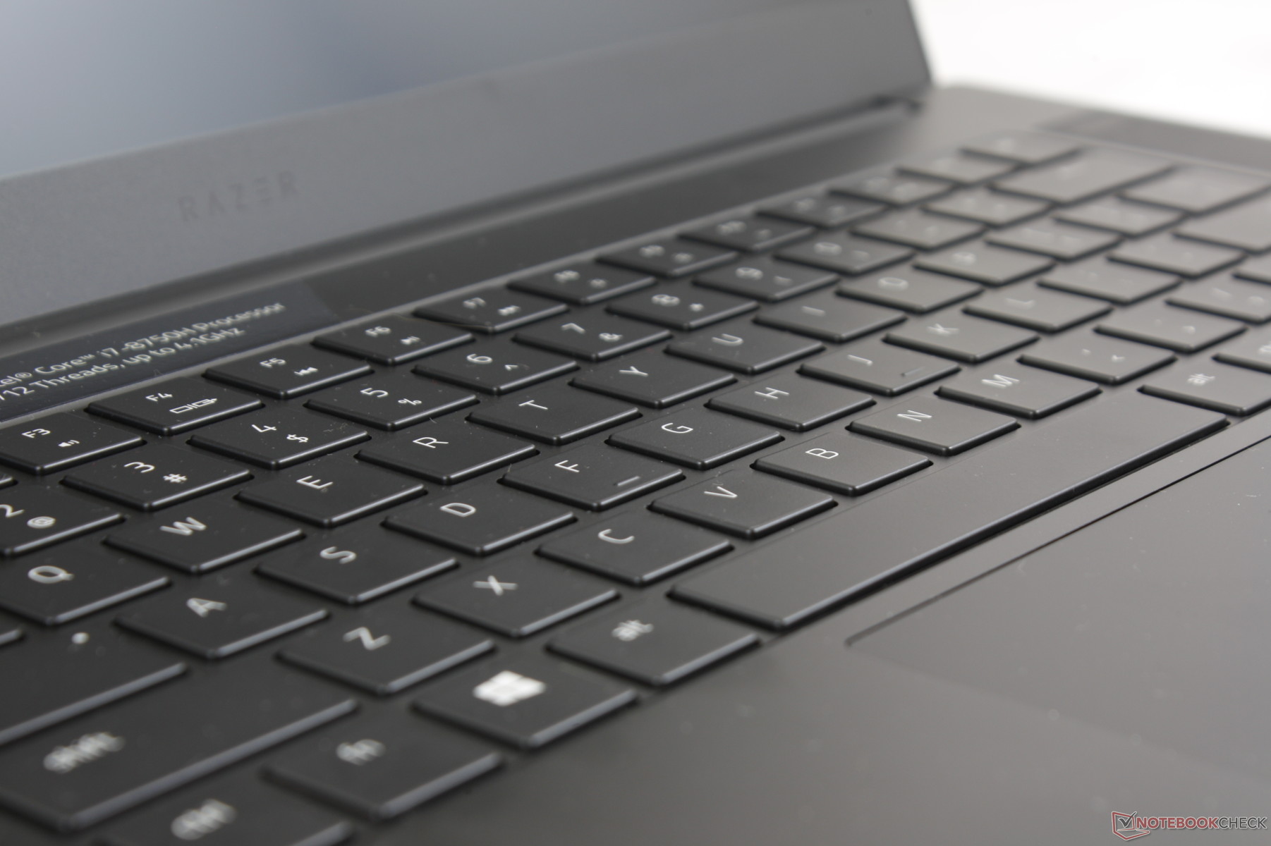 Razer hat die Eingabegeräte nicht verändert, weshalb sowohl die Größe und der Hub als auch das Tippgefühl der Tastatur und des Trackpads identisch sind. Die Einzeltasten-Beleuchtung wurde aber gestrichen, doch das ist nur eine oberflächliche Veränderung. Wir waren schon keine großen Fans des Tastatur-Feedbacks beim Profi-Modell, und wir hätten uns beim Basis-Modell eine Verbesserung gewünscht. Ultrabook-Nutzer werden sich auf Anhieb heimisch fühlen, doch beim Wechsel von einer Desktop-Tastatur muss man sich erst einmal umgewöhnen.