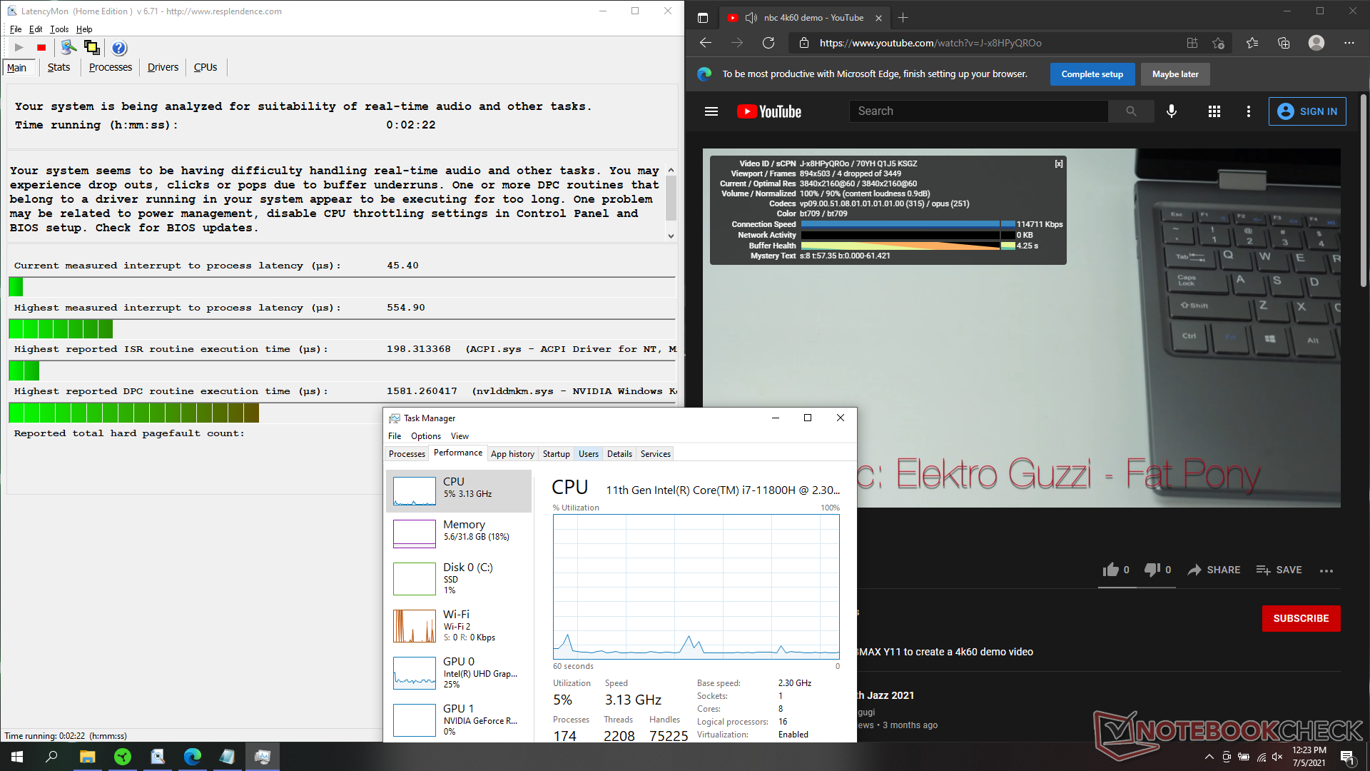 Nachdem der Core i7-10875H im Vorgängermodell hinter seinen Möglichkeiten zurückgeblieben war, hatten wir die Befürchtung, dass dies dem Core i7-11800H des neuen Modells genauso blühen könnte. Glücklicherweise wurden wir jedoch eines Besseren belehrt. Die CPU unseres Testgeräts lag im Bereich weniger Prozentpunkte an der durchschnittlichen Core-i7-11800H-Leistung aus unserer Datenbank. Bei reiner Multi-Thread-Leistung können Anwender einen Vorsprung von bis zu 30 % gegenüber dem Core i7-10875H des Vorgängermodells erwarten, und auch bei der GPU-Leistung ist eine Steigerung von 10 bis 15 % dank einer angehobenen TGP nicht von schlechten Eltern. Abhängig davon, wie CPU-lastig sie sind, dürften so manche Spiele von einem linearen Performance-Zuwachs profitieren.