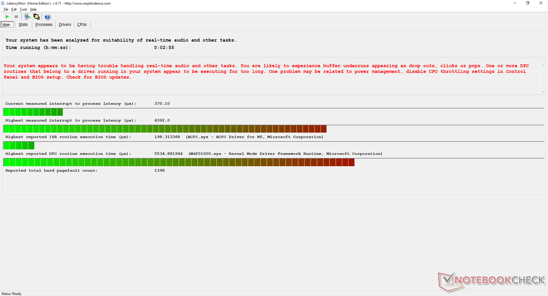 Die Langzeit-Performance war bei unserem Testgerät hervorragend. Wir konnten keinerlei Schwankungen der Taktrate oder der Testergebnisse feststellen, wie dem CineBench-R15-xT-Graph unten entnommen werden kann. Alle Benchmarks wurden mit den Razer-Synapse-System-Einstellungen „Boost“ und „High“ durchgeführt.