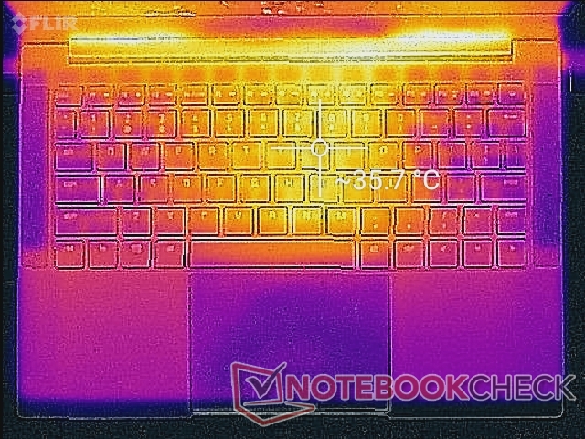 (+) Die Handballen und der Touchpad-Bereich sind mit gemessenen 28.4 °C kühler als die typische Hauttemperatur und fühlen sich dadurch kühl an.