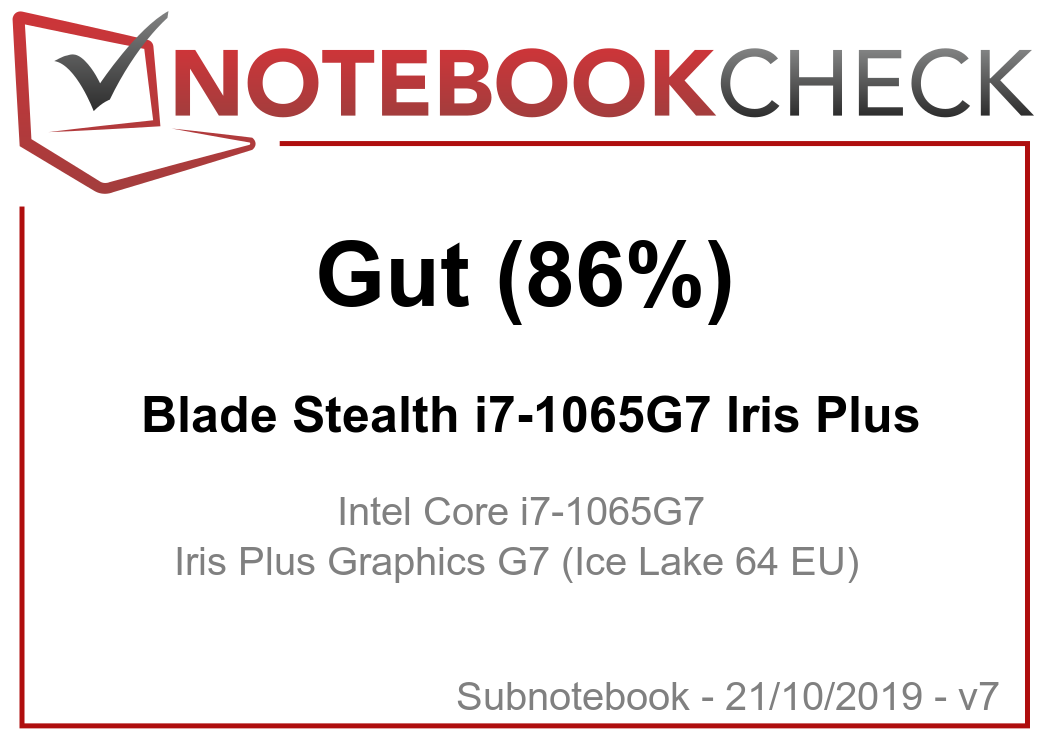 Der Core i7-1065G7 aus Intels 10. Prozessorgeneration ist der direkte Nachfolger des Core i7-8565U aus der 9. Prozessorgeneration und ein direkter Konkurrent des AMD Ryzen 7 3700U. Die integrierte Iris-Plus-GPU ist gegenüber der UHD Graphics 620 eine gewaltige Verbesserung und mit AMDs Radeon RX Vega 10 vergleichbar. Im Gegensatz zum GTX-1650-Max-Q-Modell des Blade Stealth kommt bei unserer Konfiguration mit exklusiver Iris-Plus-Grafik die schnellere 25-W-Version des Core i7-1065G7 zum Einsatz.