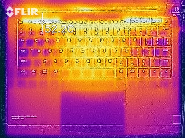 (+) Die Handballen und der Touchpad-Bereich erreichen maximal 35.3 °C und damit die typische Hauttemperatur und fühlen sich daher nicht heiß an.