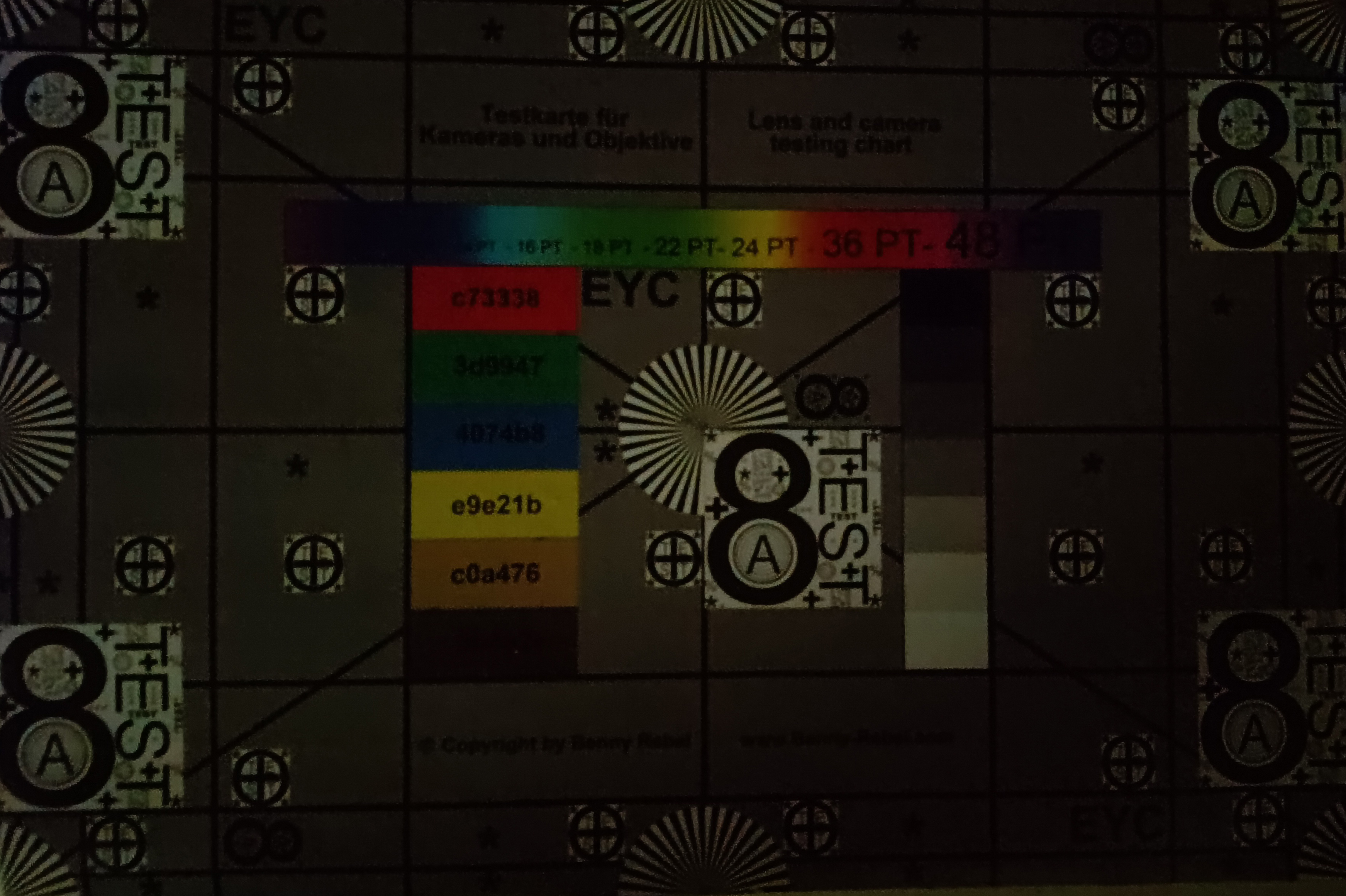 Hauptkamera BlumeHauptkamera UmgebungHauptkamera Low LightDie Hauptkamera testen wir auch noch in unserem Fotolabor mit festen Lichtszenarien. Hier zeigt sie eine gute Darstellung des Testcharts, auch an den Rändern des Bildes nimmt die Schärfe kaum ab. Bei nur 1 Lux Beleuchtungsstärke ist das Bild noch einigermaßen erkennbar, Details sind aber kaum sichtbar.