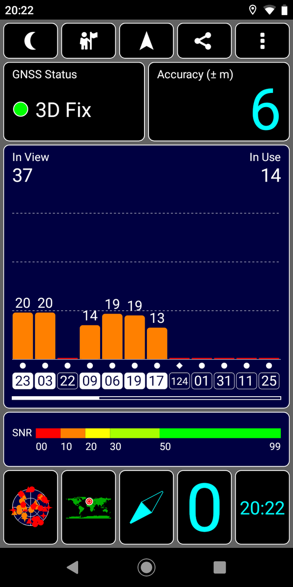 Das Outdoor-Handy kommuniziert offiziell mit den Satellitennavigationssystemen GPS und GLONASS. Die App GPS-Test zeigt außerdem Satelliten des Satellitensystems Beidou an und weist bereits im Gebäude eine Genauigkeit von 6 Metern aus. Tatsächlich können wir auch in der Praxis via Google Maps beinahe jeden Raumwechsel nachvollziehen.