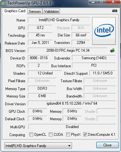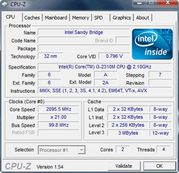 Samsung bietet seine 15.6-Zoll Serie 2 mit einem Intel Core i3-2310M (2 x 2.1 GHz) an. Die Variante mit dem CPU-Vorgänger i3-380M ist im Handel derzeit nicht zu finden (200B5A A01). Die 2-Kern-CPU beherrscht keinen Turbo Boost, aber Hyperthreading (4 Threads). Die integrierte Intel HD 3000 Grafiklösung in der CPU ist aktiv, ebenso der Speicherkontroller. Per Nvidia Optimus ist eine Umschaltung mit der NVIDIA NVS 4200M (512 MB) möglich. Im Vergleich zu den teureren Core-i5-Modellen, wie i5-2540M, hat der i3-2310M keine Unterstützung für AES New Instructions (Ver- oder Entschlüsseln).