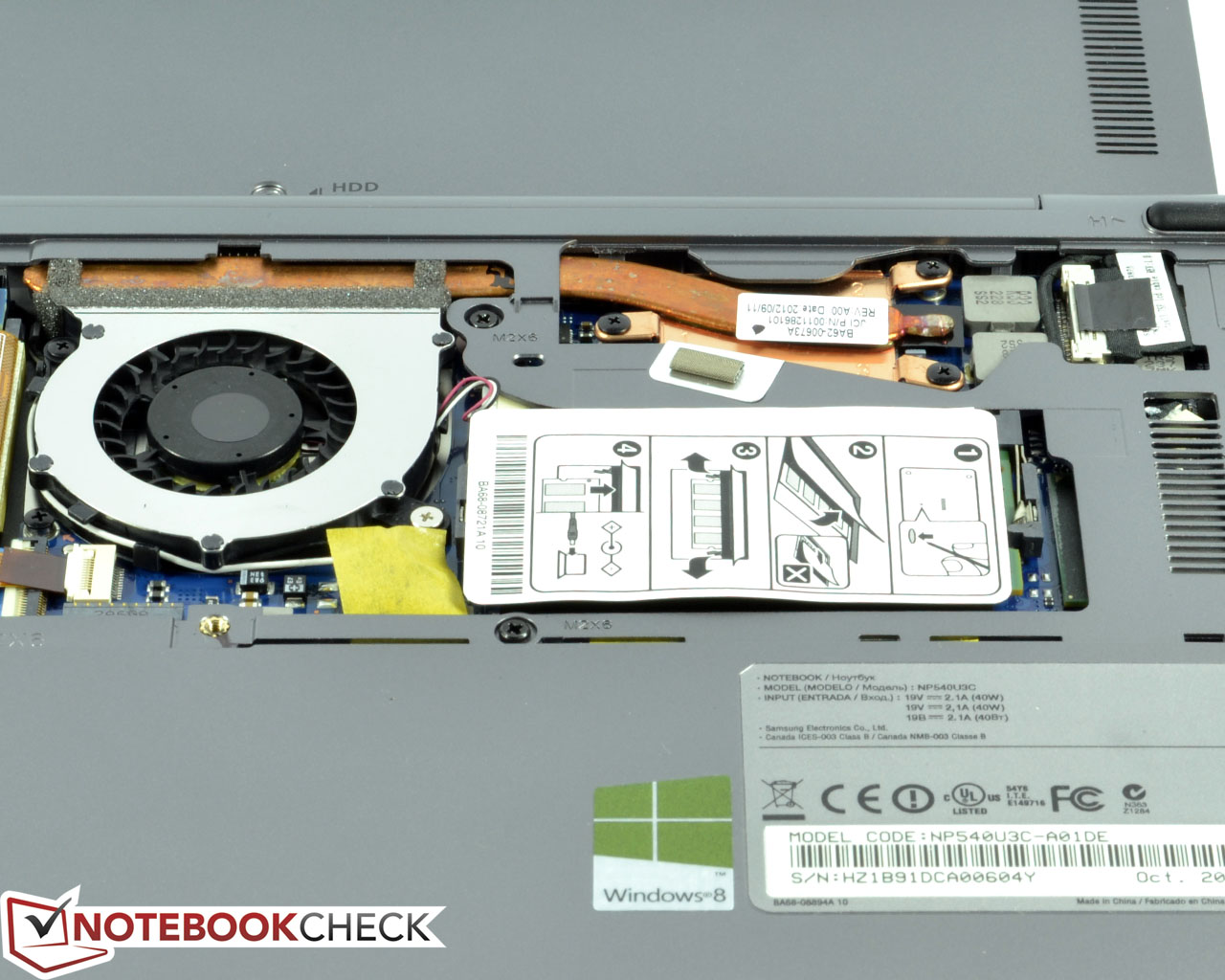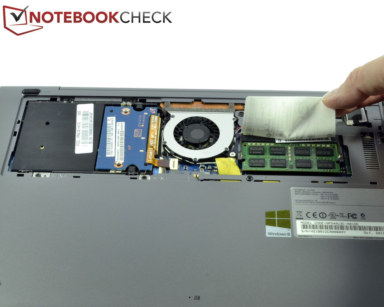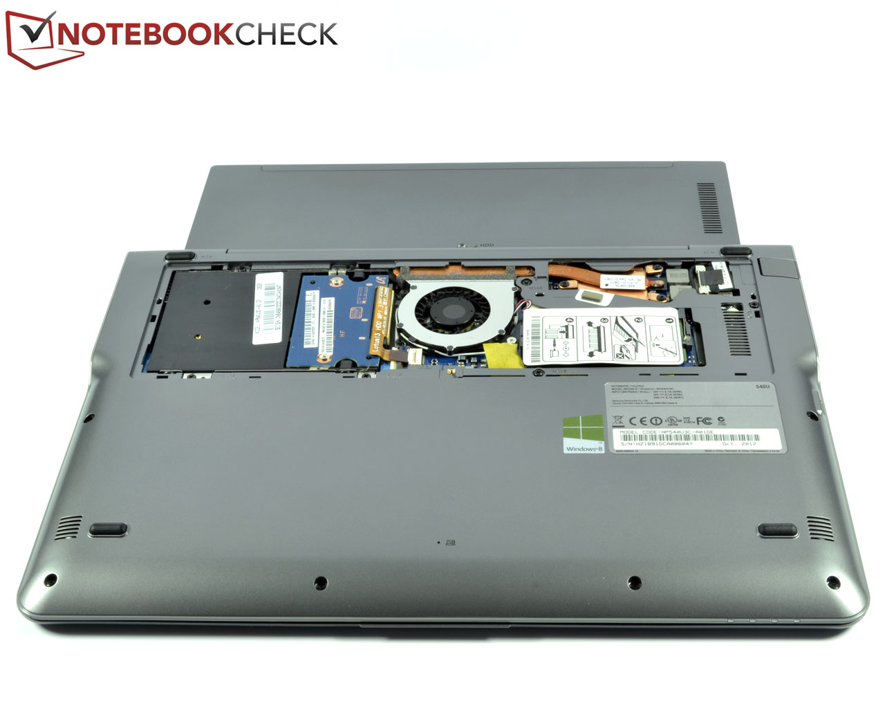 Alternativ zur SSD kann man das Samsung Serie 5 540U3C auch mit einer konventionellen Festplatte und einem kleinen SSD-Cache konfigurieren. Die mögliche Wartung übersteigt die der meisten anderen Ultrabooks und stellt einen großen Pluspunkt dar.