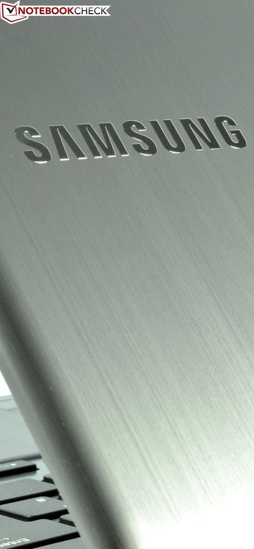 Das Gehäuse des Testgerätes Samsung 540U3C entspricht nahezu komplett dem der beiden Vorgänger 530U3B und 530U3C aus der Serie 5. Was im Testbericht zum 530U3B gesagt wurde, hat noch immer Bestand: Die Oberseite aus Aluminium und die Unterseite aus Fiberglas weisen Defizite bei Stabilität und Steifigkeit auf. Den größten Schwachpunkt damals wie heute stellen die Scharniere des Displaydeckels dar. Dieser wippt bei Erschütterungen sehr stark nach, was im Normalfall schon ein mittelschweres Ärgernis bedeutet und störende Reflexionen provoziert. Ist aber wie im Testgerät auch noch ein Touchscreen eingebaut, leiden Bedienpräzision und Bildinhalte sehr stark. Aufgrund des ständigen Tippens gegen das Display wackelt selbiges stetig, gerade bei Texteingaben oder Spielen ist das auf Dauer unbequeme Festhalten des Displays mit einer Hand unumgänglich. Durch das modifizierte Display inklusive Glasabdeckung hat auch das Gesamtgewicht im Vergleich zum Vorgänger um circa 160 g auf 1,6 kg zugelegt.