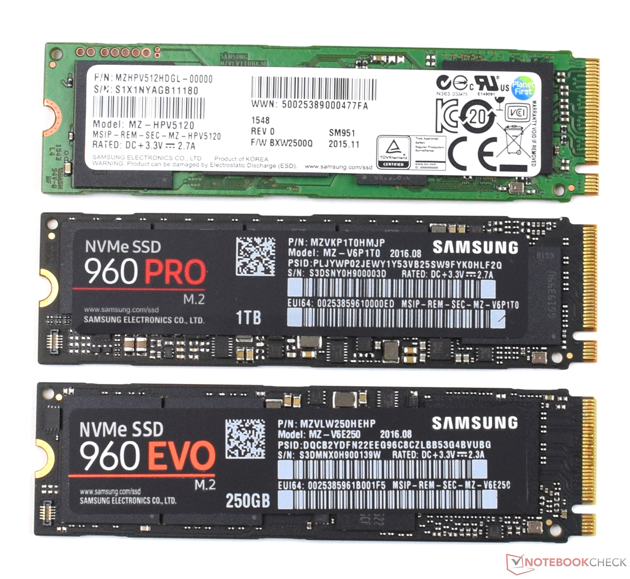 | Samsung SSD 960 Evo 250GB m.2 NVMe | Samsung SSD 960 Pro 1TB m.2 NVMe | Samsung SM951 MZHPV512HDGL m.2 PCI-e | |