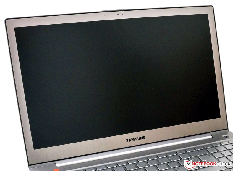 Das Ativ Book 8 ist mit einem glänzenden 15,6-Zoll-Bildschirm samt Touchscreen bestückt, der über eine native Auflösung von 1.920 x 1.080 Bildpunkten verfügt. Samsung bietet das Notebook auch mit einem matten Full-HD-Bildschirm (ohne Touchscreen) an. Die durchschnittliche Helligkeit fällt mit 242 cd/m² ganz gut aus. Das N550JV (277,7 cd/m²) liefert einen besseren Wert. Weit vor der Konkurrenz positioniert sich das Ideapad mit sehr guten 367,7 cd/m². Der Wert des Ativ Book ist schlechter als derjenige seines Vorgängers (273,9 cd/m²).