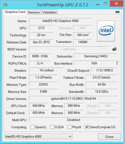 Das Ativ Book ist mit zwei Grafikchips ausgestattet. Die Intel HD Graphics 4000 GPU ist für den Alltags- und Akkubetrieb zuständig. Der Radeon HD 8870M Grafikkern berechnet leistungsfordernde Anwendungen - beispielsweise Computerspiele. Über Anwendungsprofile wird geregelt, welcher Chip bei welcher Anwendung zum Einsatz kommt. Die Voreinstellung kann dabei jederzeit vom Nutzer im Treibermenü geändert werden. Der Radeon Grafikkern gehört der GPU-Oberklasse an. Er unterstützt DirectX 11.1 und arbeitet mit einer Geschwindigkeit von 725 MHz. Per Turbo kann die Geschwindigkeit auf 775 MHz erhöht werden. Diesen Turbo nutzt das Ativ Book.