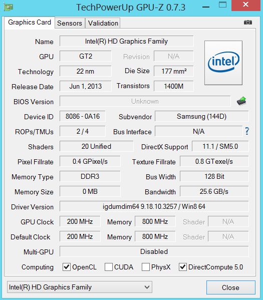 | Samsung ATIV Book 9 Plus HD Graphics 4400, 4200U, Samsung MZNTD128HAGM | Dell XPS 12 Haswell HD Graphics 5000, 4650U, Liteonit LMT-256M6M | Dell XPS 13 HD Graphics 4000, 3517U, Samsung SSD PM830 256 GByte mSATA | |