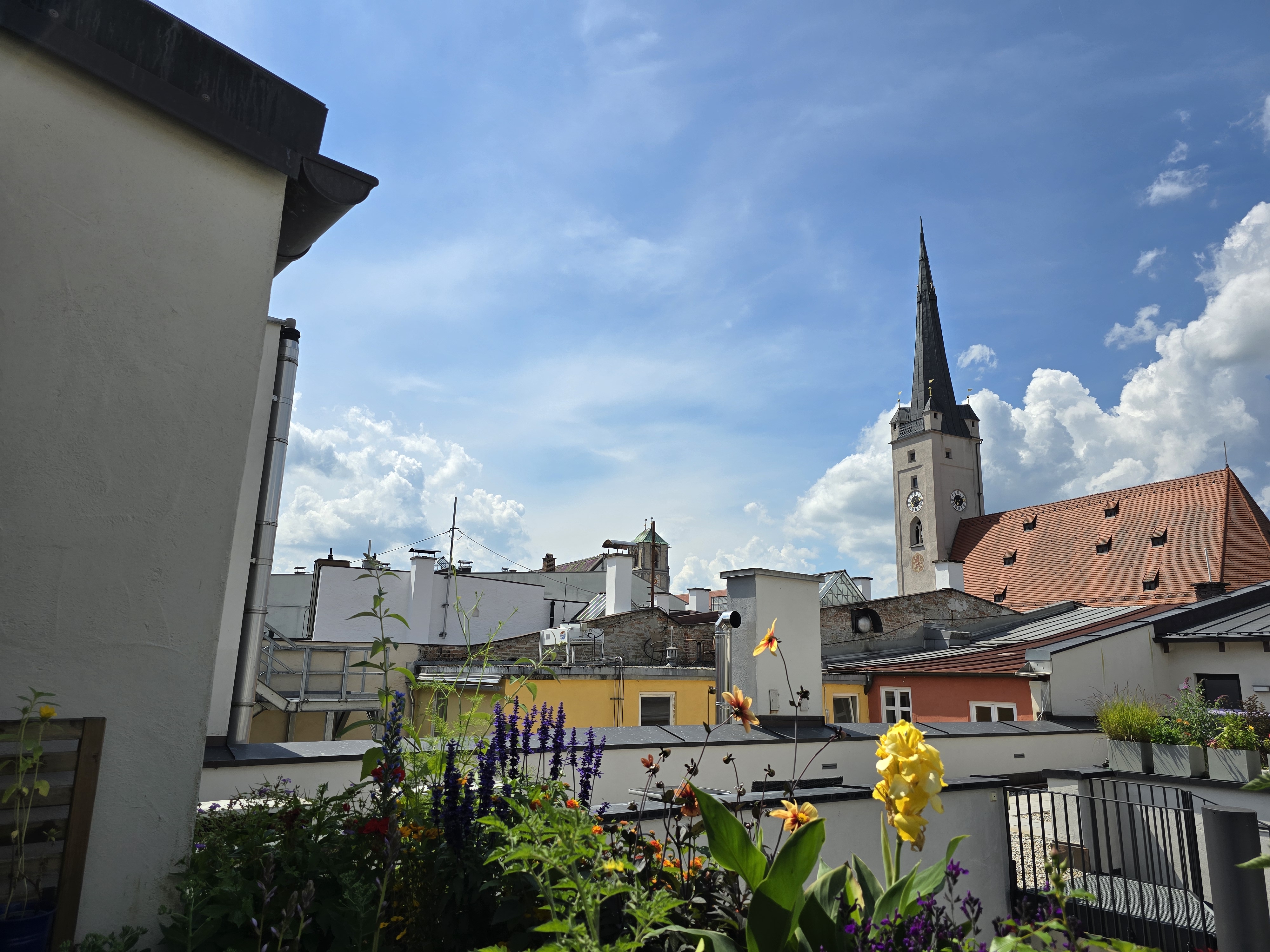 Tageslicht-Aufnahme 1Tageslicht-Aufnahme 2Lowlight-AufnahmeIm Testlabor zeigt die Hauptkamera, dass sie Aufnahmen stets etwas überbelichtet und Schwierigkeiten hat, feine Bilddetails scharf darzustellen. Bei 1 Lux Restlicht verschwinden die ColorChecker-Farbkarte und der Testchart im Dunkeln.