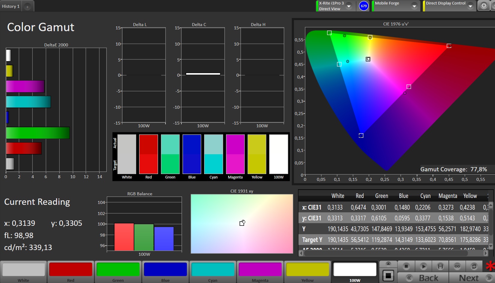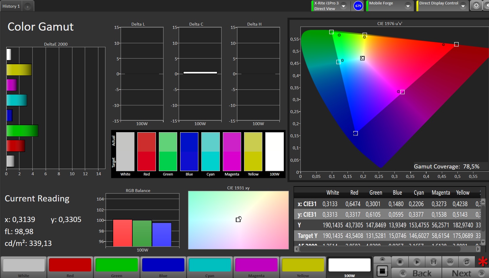 | Delta E Colorchecker * | 2.31 | 1.2 48% | 8.5 -268% | 4.45 -93% | 3.9 -69% |