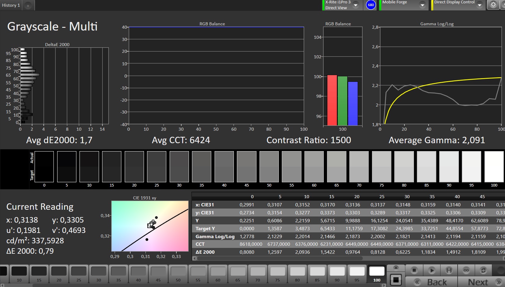 ΔE Greyscale Calman: 1.7 | ∀{0.09-98 Ø5}