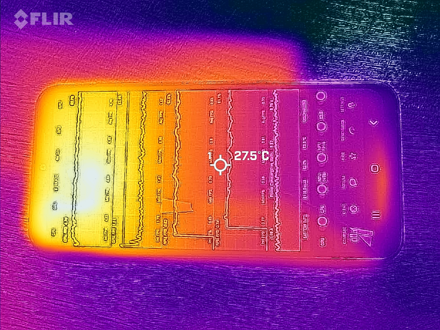 Wir messen die Temperatur des Galaxy A15 4G und schauen, ob wir es mit hoher Belastung ins Schwitzen bringen können. Und tatsächlich ergeben sich Temperaturen von bis zu 45,5 °C an der Oberfläche. Das ist schon unangenehm anzufassen, hinzu kommt noch, dass wir bei Raumtemperatur messen und diese Erwärmung an heißen Sommertagen noch deutlich stärker ausfallen kann.