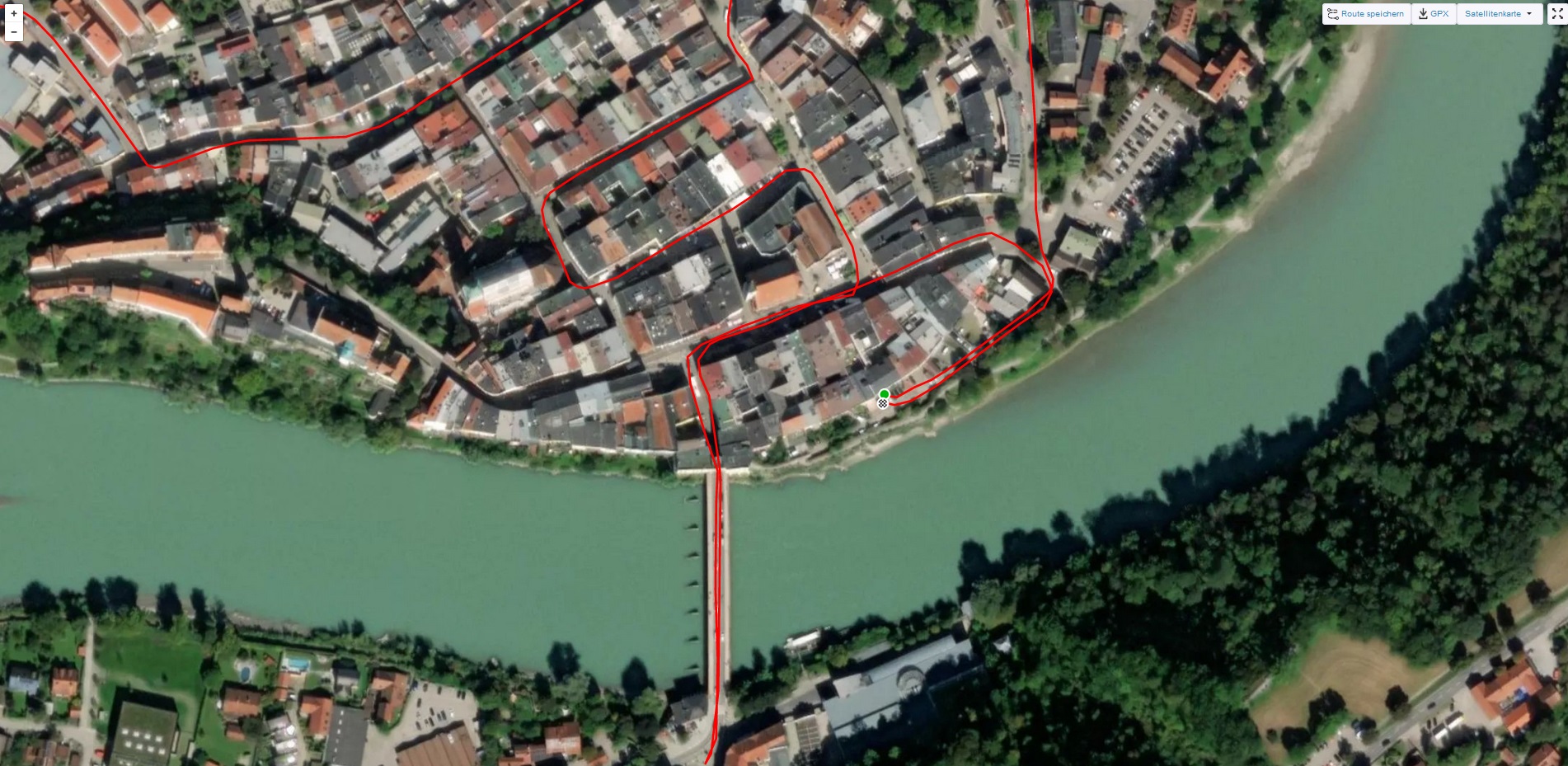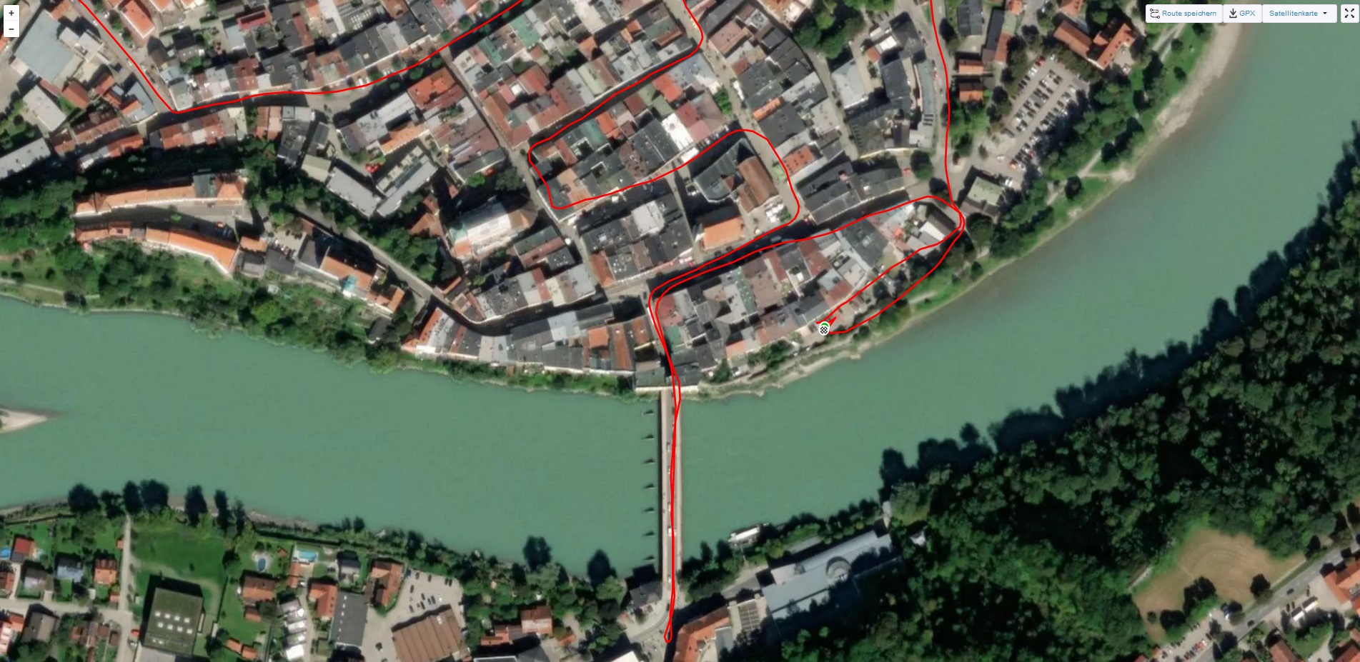 Das Ergebnis: Auch das Galaxy A15 4G positioniert uns relativ genau auf den von uns gefahrenen Wegen, tut sich aber generell im offenen Gelände leichter als in engen Altstadtgassen. Dort kommt es immer wieder mal zu leichten Abweichungen, durch welche wir scheinbar in Häuser fahren oder es so aussieht, als wären wir fast ins Wasser gefallen.