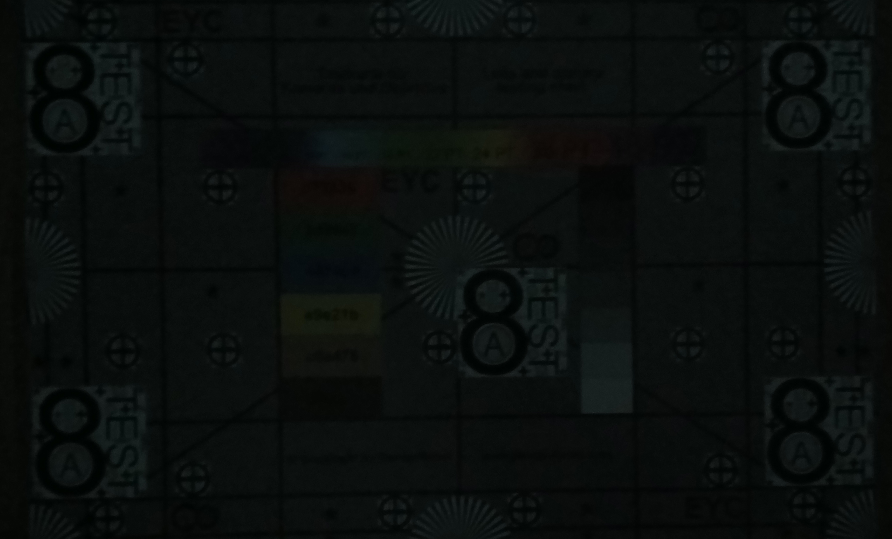 Hauptkamera PflanzeHauptkamera UmgebungHauptkamera Low LightWeitwinkelkameraIm Fotostudio können wir die Beleuchtung exakt kontrollieren und stellen hier die Hauptkamera noch einmal auf den Prüfstand. Das Testchart wirkt dabei wenig scharf und lässt es auch an Kontrast vermissen. Bei nur 1 Lux Beleuchtungsstärke ist das Motiv nur noch sehr grob erkennbar.