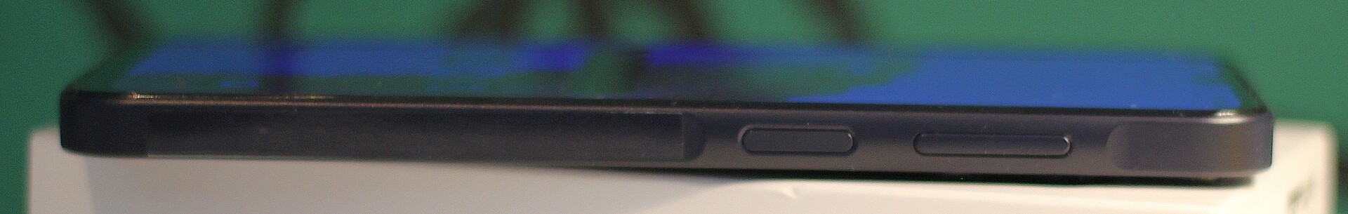 Rechts am Gehäuse finden sich die physischen Tasten, nämlich eine Lautstärkewippe und der Standby-Taster. Sie sind gut mit dem Finger erfühlbar und auch für Linkshänder ergonomisch platziert. Im Standby-Button integriert ist auch ein Fingerabdruckleser, welcher zuverlässig reagiert und das Handy ohne Wartezeit entsperrt.