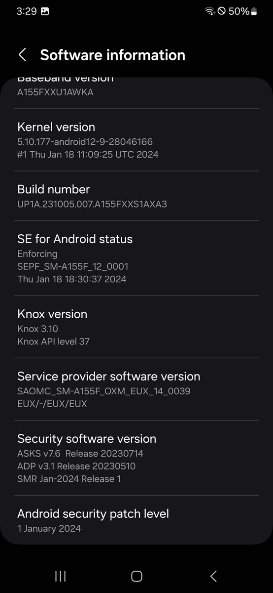 Bei unserem Testgerät sind die Sicherheitspatches vom 1. Januar 2024, also zum Testzeitpunkt noch im 3-monatigen Updatezeitraum, den Samsung verspricht. Das Update muss nun aber zeitnah erfolgen, um noch im Plan zu bleiben.