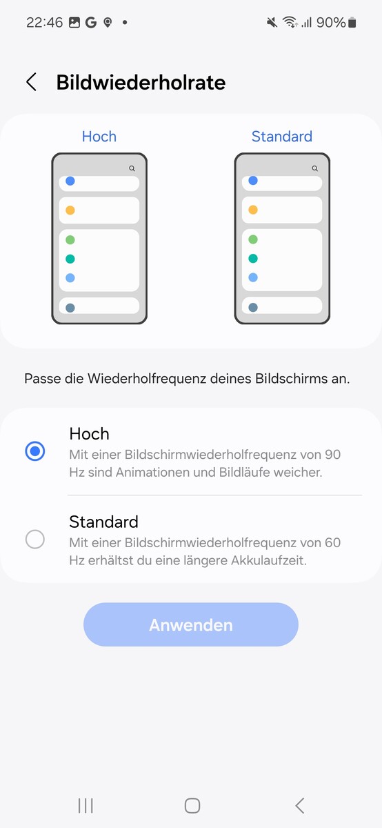 - Display - heller AMOLED-Screen mit Full HD+ und 90 Hz