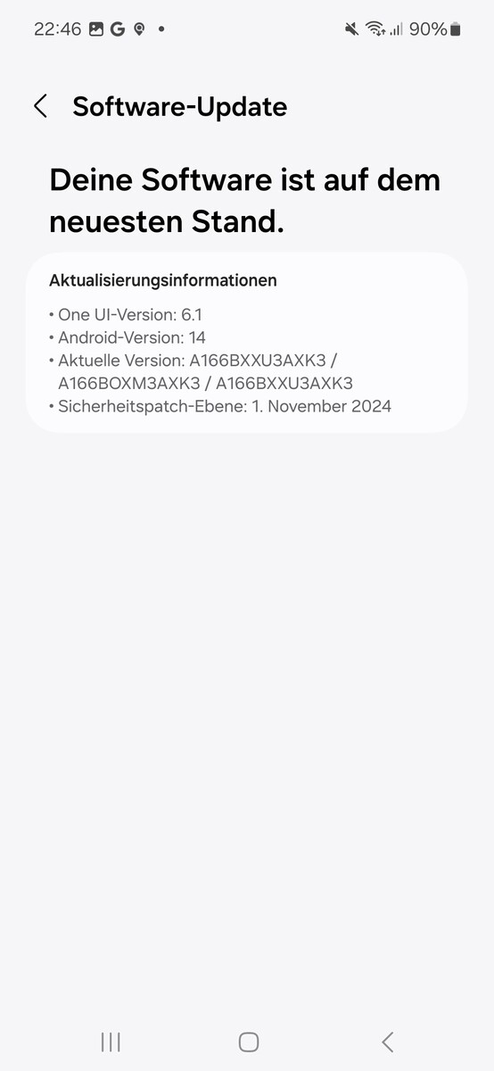 Bei unserem Testgerät sind die Android-Sicherheitsupdates zum Teszeipunkt auf dem Stand vom November 2024 und damit nach Samsung-Maßstäben aktuell.
