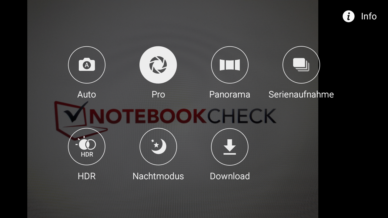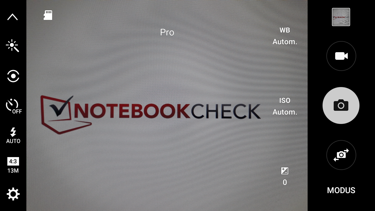 Die Kamera-Software bietet unter anderem die Option, zwischen einem „Auto“- sowie einem „Pro“-Modus zu wählen, der zusätzliche Einstellungsmöglichkeiten bereithält. Will der Nutzer HDR-Aufnahmen anfertigen, muss er in einen speziellen Modus wechseln. Praktisch ist, dass die Foto-App direkt aus dem Standby-Betrieb durch doppeltes Betätigen des Home Buttons gestartet werden kann.