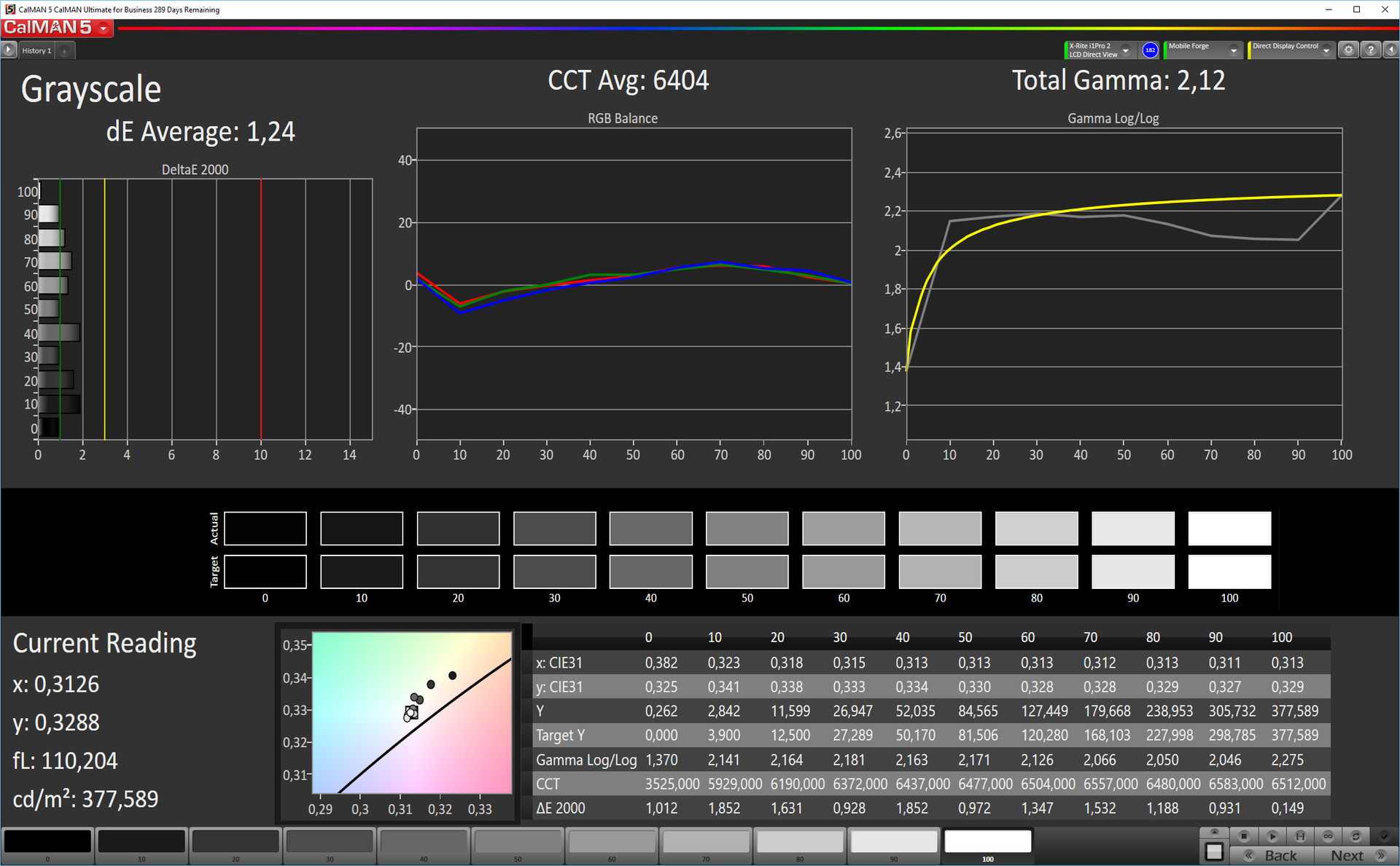 ΔE Greyscale Calman: 1.34 | ∀{0.09-98 Ø5}