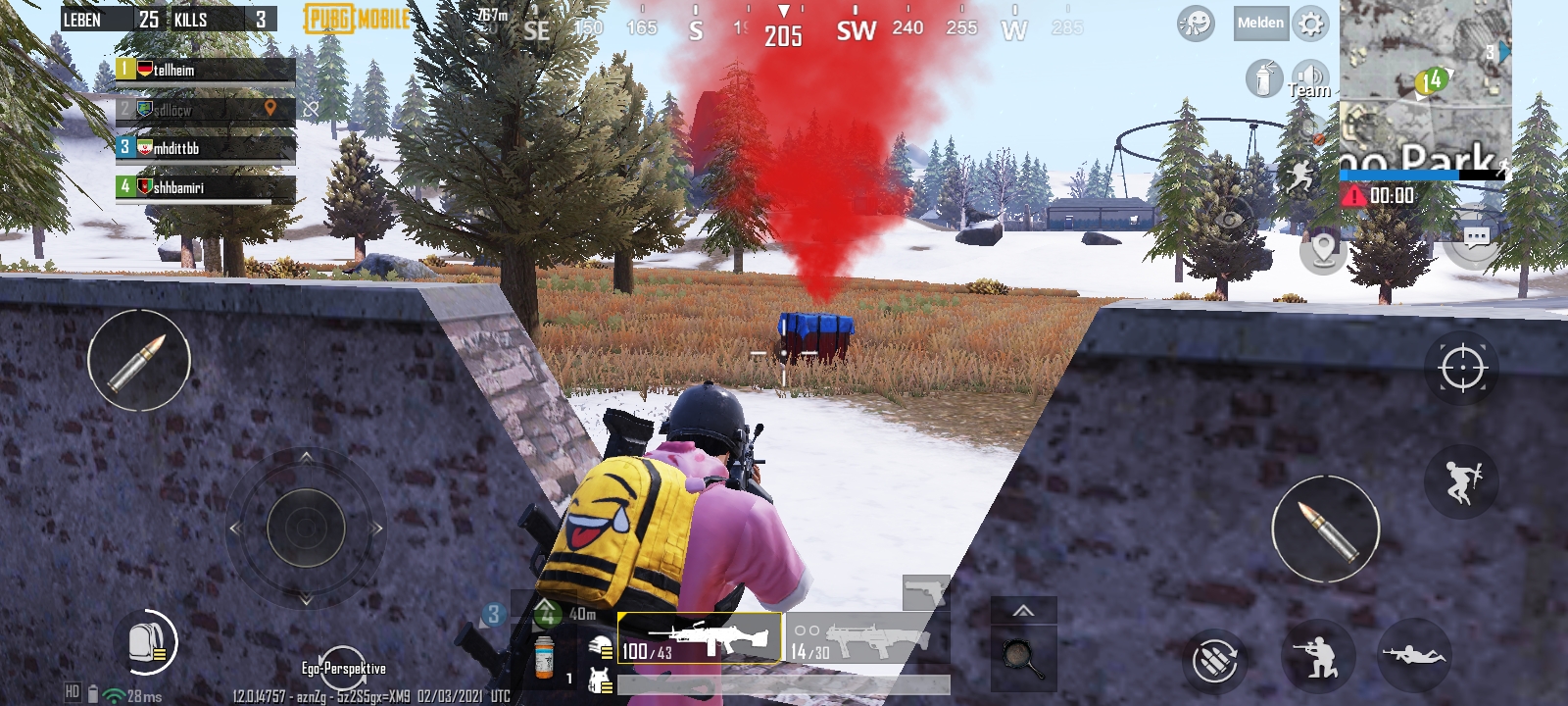 PUBG Mobile wird direkt auf 30 FPS abgeriegelt und kann höchsten im HD-Setting gespielt werden und läuft dann auch recht flüssig. Die kleinen Framedrops sind zwar spürbar, stören aber nicht übermäßig.