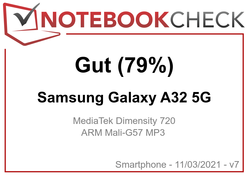 | 79.3 % v7 (old) | 03 / 2021 | Samsung Galaxy A32 5G Dimensity 720, Mali-G57 MP3 | 205 g | 64 GB UFS 2.1 Flash | 6.50" | 1600x720 | |